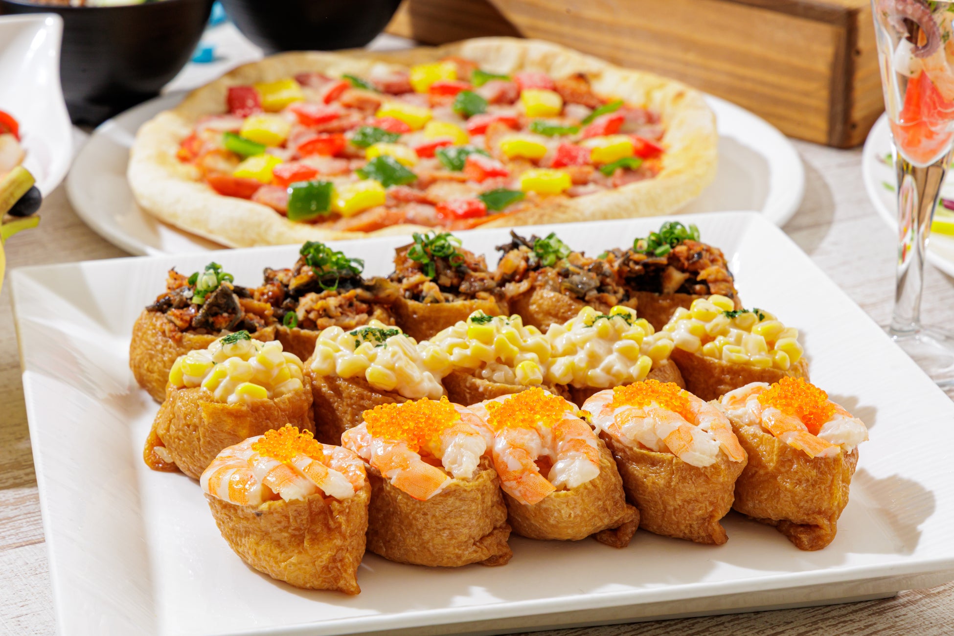 お寿司(ハワイアン ぽっちゃりいなり寿司・サーモンロール・スパム握り・鮪・トラウトサーモン・海老・玉子)
