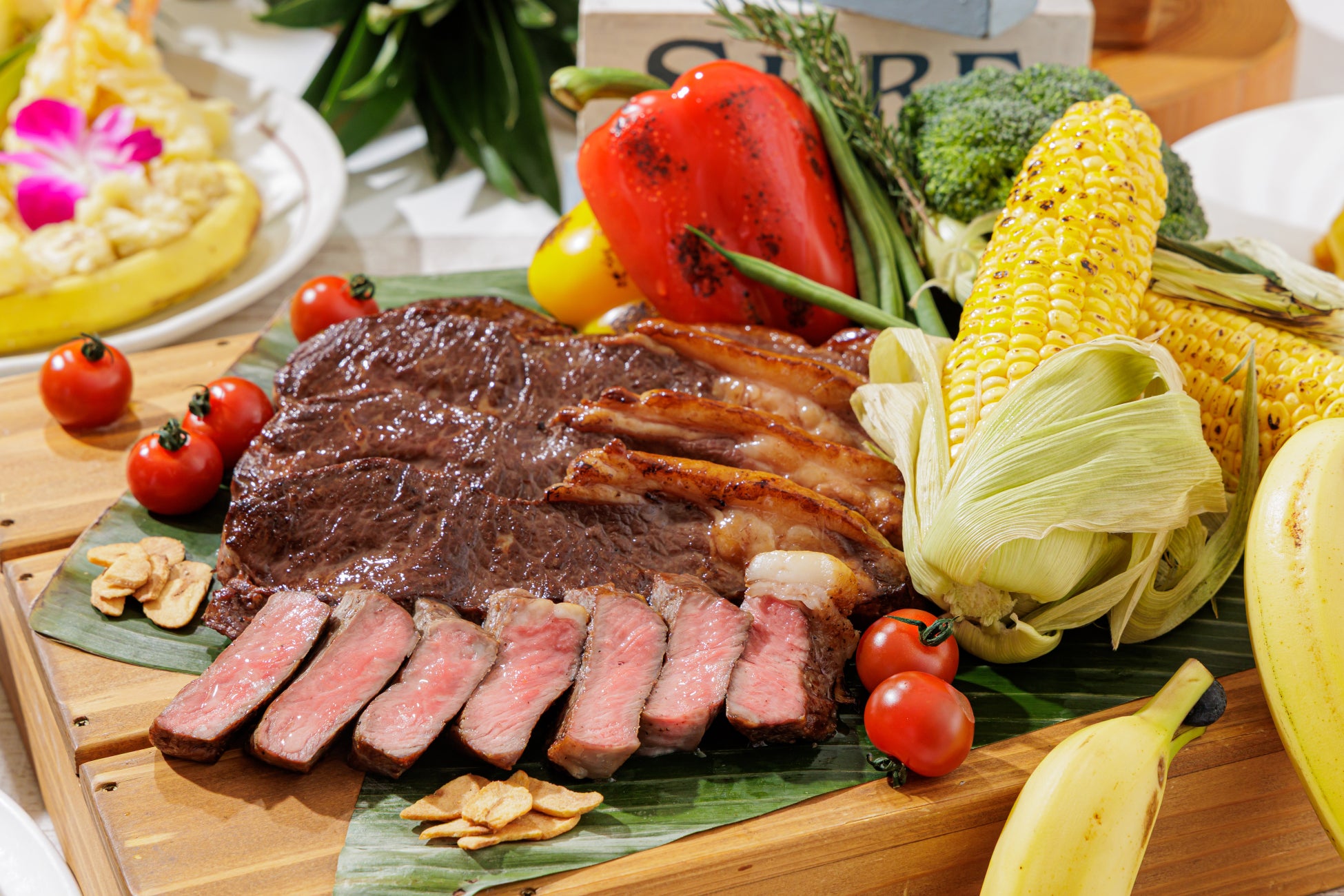 本年は、ジューシーなビーフステーキ(パイナップル・トマト・アボカドの洋風ソース/和風ソース)をはじめ、ガーリックシュリンプ、ポケ丼、ロミロミなど、ハワイの定番料理を豊富にご用意。中でもビーフステーキはライブキッチンにて、お客様のご注文を受けてから焼き上げるスタイルで、焼き立てならではの香ばしさとジューシーさをお楽しみいただけます。