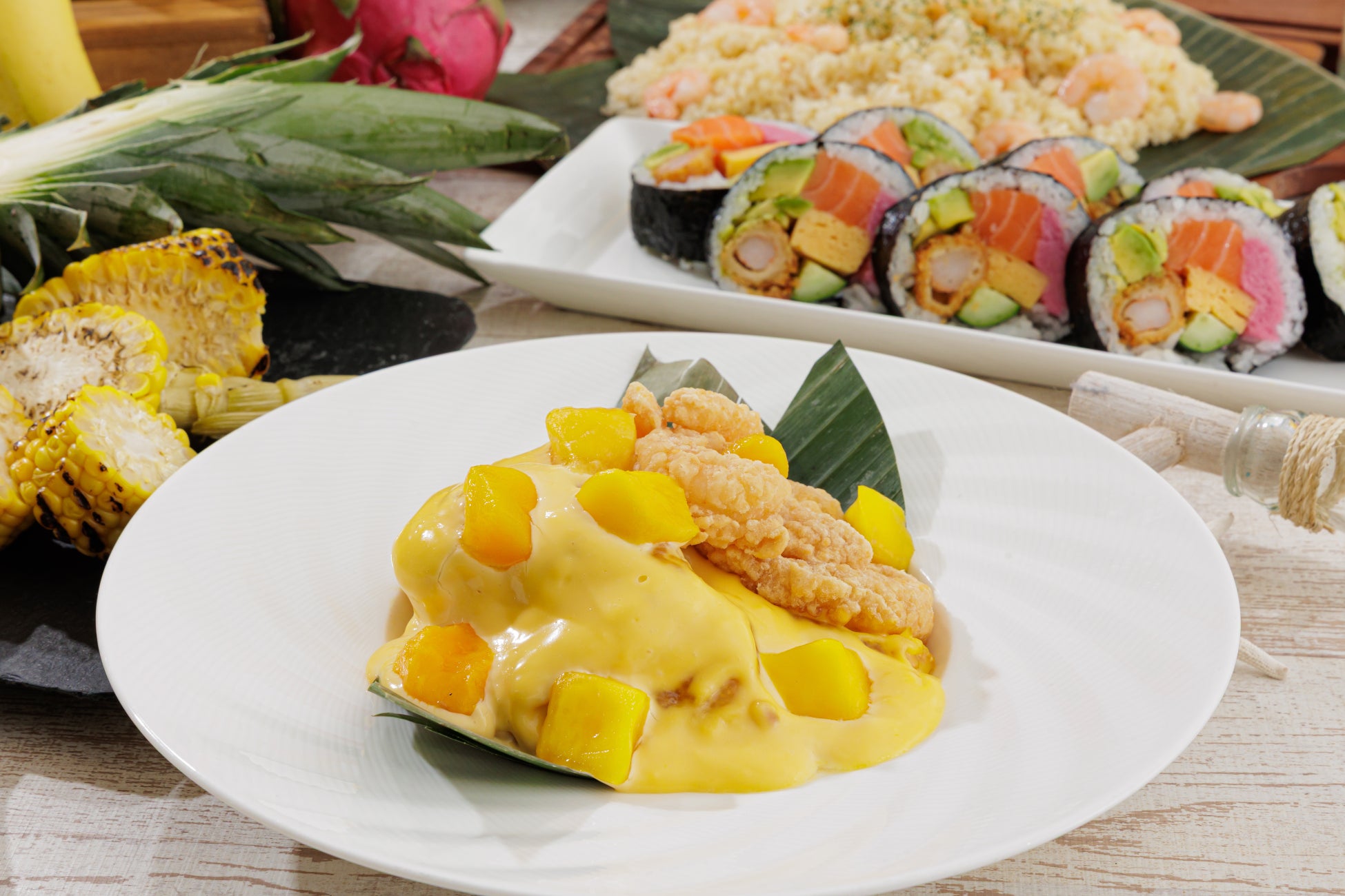 さらに、ココナッツや南国フルーツをアクセントに取り入れたバラエティ豊かなメニューに加え、お子様から大人まで楽しめるスイーツも充実。ココナッツプリン、マンゴーケーキ、2色のハウピア、冷たいパイナップルスープ、かき氷など、夏にぴったりの爽やかな味わいが揃います。