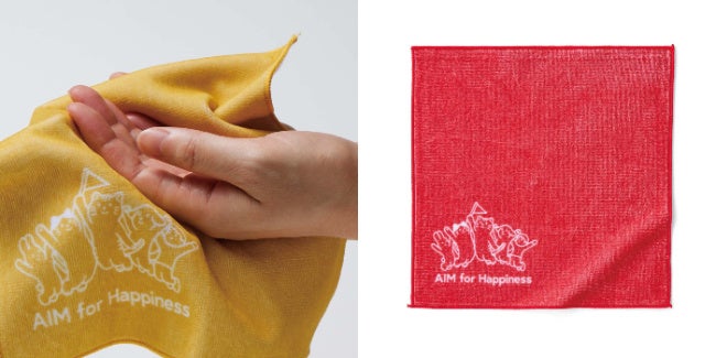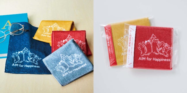 チャリティーのキービジュアルがプリントされたタオルハンカチです。カラーは〈レッド〉〈グレー〉〈ネイビー〉〈イエロー〉の4種類。パッケージにはAIM医学研究の解説漫画がデザインされていて、自分用としてはもちろん、ギフトにもおすすめです。贈るたびにチャリティー企画を知ってもらうきっかけにもなります。