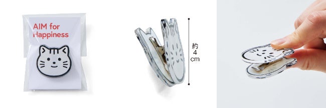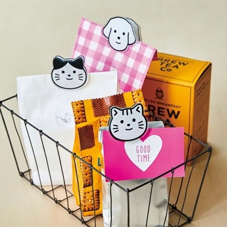 チャリティーのキービジュアルから猫と犬の絵柄を使用したダイカットクリップ。デザインは〈トラ猫〉〈ハチワレ猫〉〈いぬ〉の3種類です。食品の袋を留めるのに使ったり、メモを挟んだり、使い方はいろいろ。かわいいイラストは目印にもなります。オリジナルのパッケージに入っているので、プレゼントにもおすすめです。