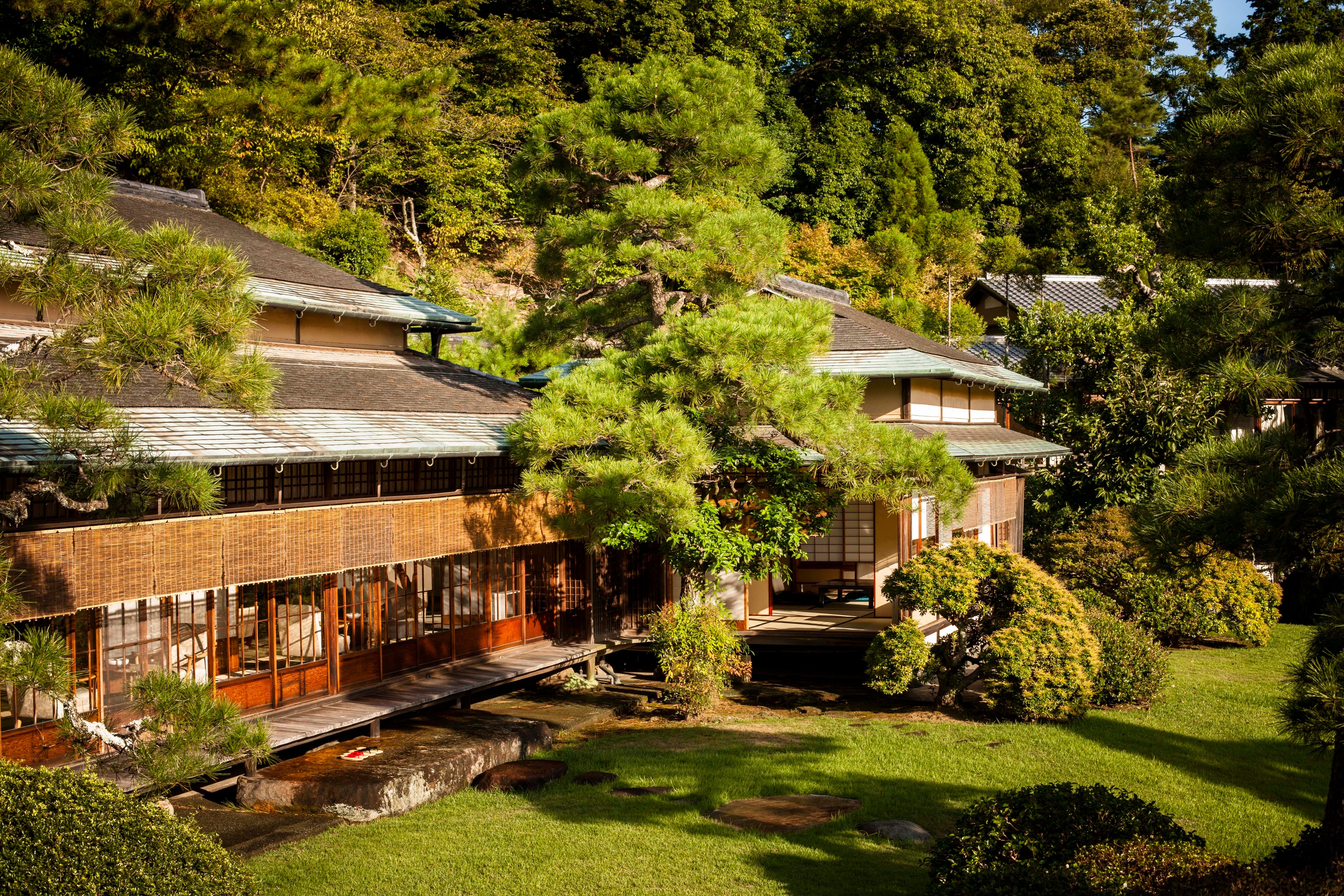 三養荘は昭和4年、旧三菱財閥の創始者岩崎弥太郎氏の長男久彌氏の別邸として、京都の庭師小川治兵衛の手による壮大な日本庭園の中に、瀟洒な数寄屋造りの和風建築邸として建設されました。平成29年6月、貴重な国民的財産として文化庁により有形文化財に登録されました。