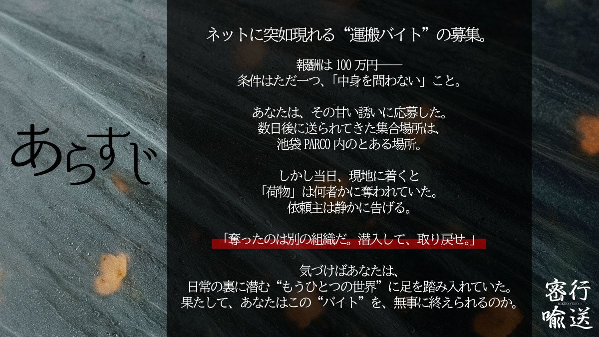 本当に存在するのか分からない─噂の“運搬バイト”。周遊型イマーシブサスペンス『密行喩送(みっこうゆそう)』