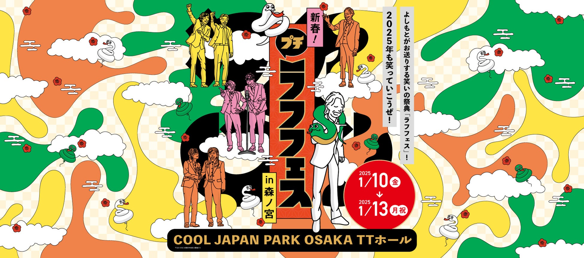 人気者から旬の若手まで、様々なラインナップでお届けするお笑いフェスティバル「新春!プチラフフェスin森ノ宮」を、2025年1月10日(金)~1月13日(月・祝)に大阪・COOL JAPAN PARK OSAKA TTホールにて開催することが決定いたしました。