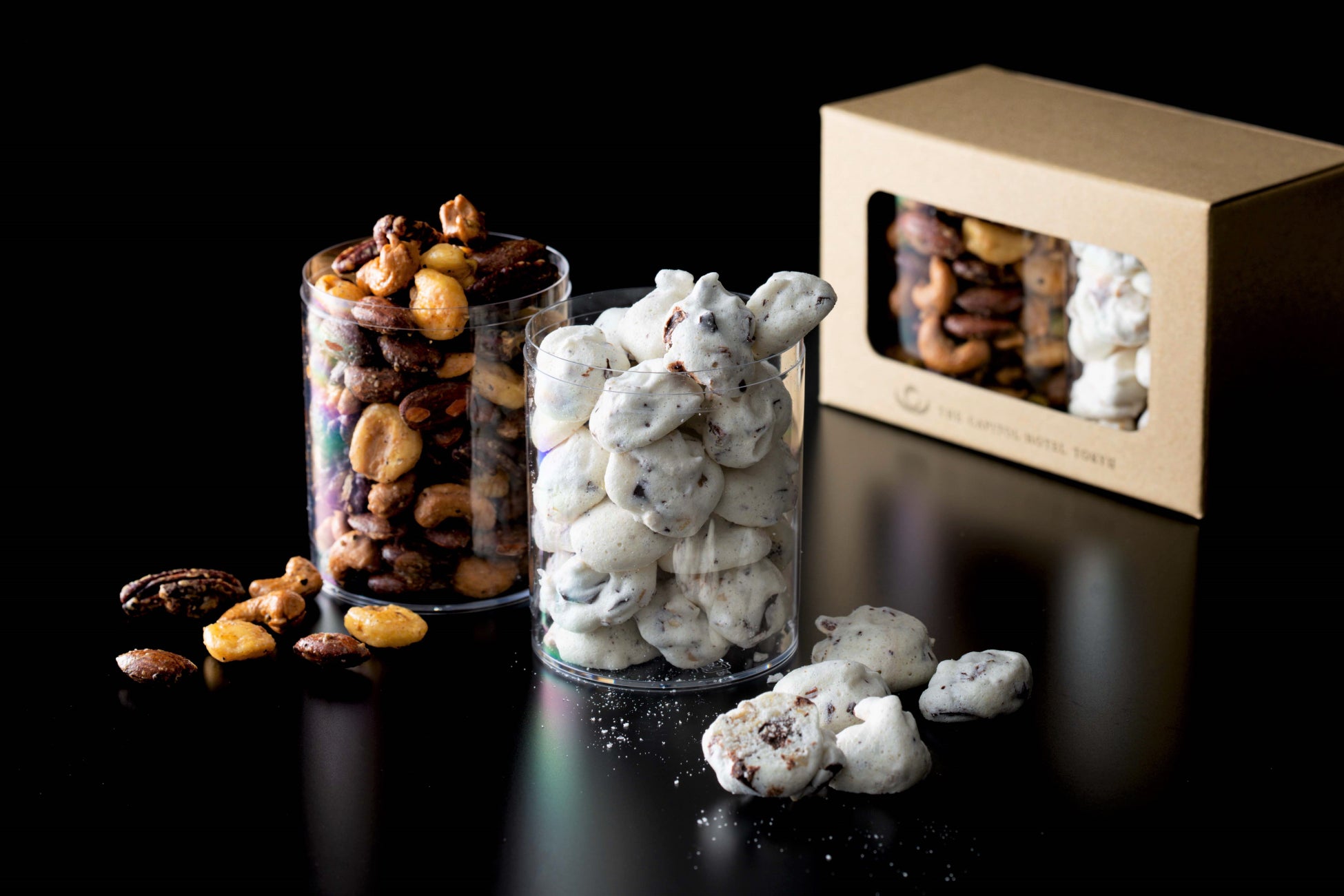 さらに、多くのお客さまにご好評をいただいた「トリュフナッツ」と「ムラングショコラ」が、このたびセットになって定番商品として登場。黒トリュフが香るナッツのキャラメリゼと、軽やかな口どけのショコラメレンゲを詰め合わせた、異なる余韻をひと箱でお楽しみいただける、夏の贈りものにもふさわしい上質なアソートです。ペアリングとして、ワインや冷えた日本酒との相性も抜群。甘味と塩味、芳醇な香りが織りなす予想外のマリアージュをお楽しみいただけます。