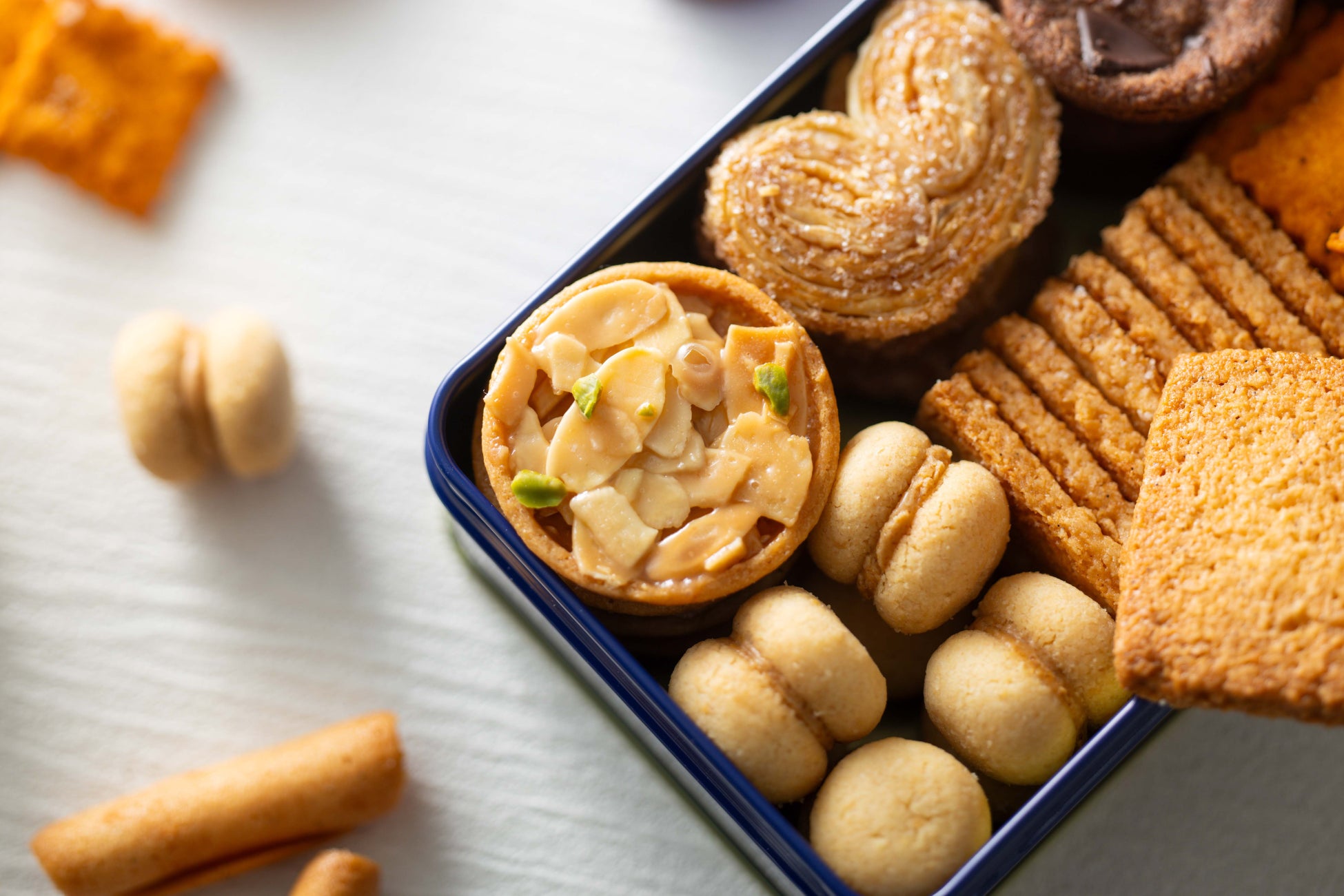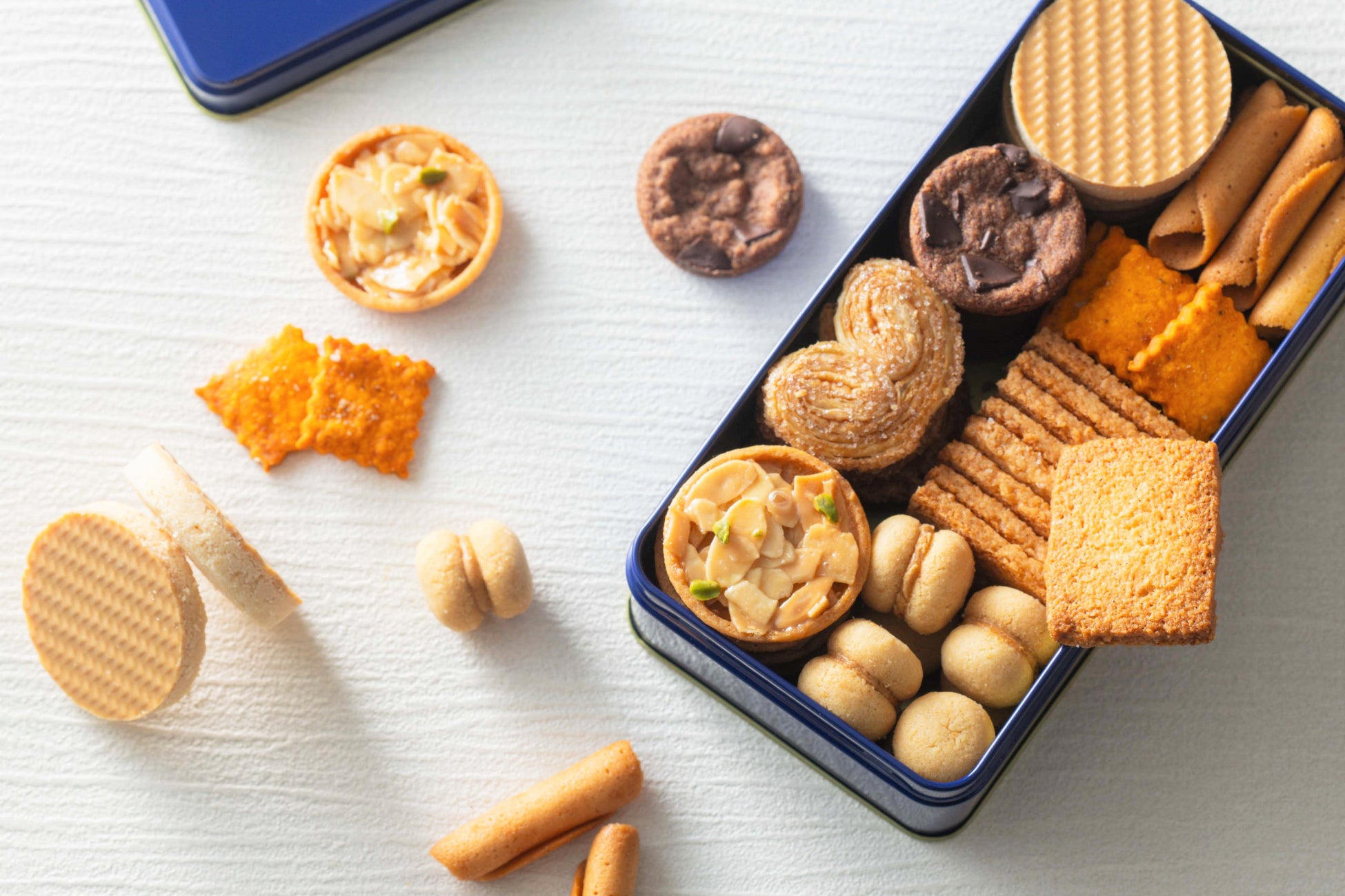 時節の風情を映した、愛らしい芸術品のようなクッキーアソート。パルミエなどのクラシックなフランス菓子に加え、チョコレートでアレンジした沖縄の伝統菓子「ちんすこう」や、夏らしさを演出するトマト&チーズのクラッカーなど、パティシエの遊び心に満ちた8種の焼き菓子を詰め合わせました。風味・食感・見た目のすべてにこだわり、一つひとつ丁寧に焼き上げる数量限定の一品です。