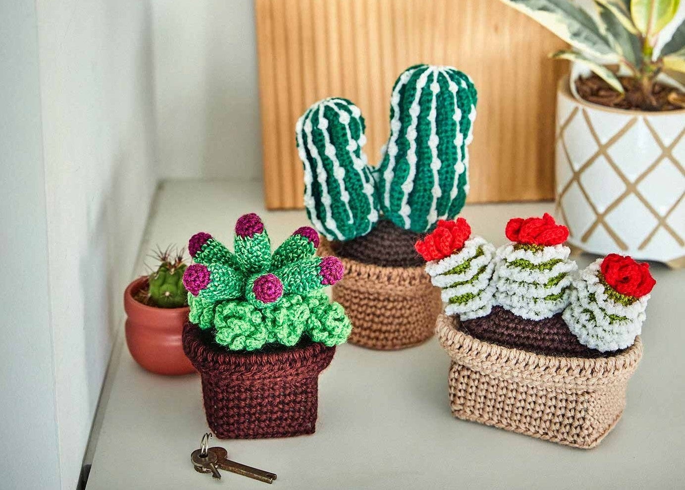 本物そっくりの多肉植物。それぞれの品種の個性もかぎ針編みで細かい部分まで表現したキット。並べて飾ってインテリアにも、小物入れとしても活躍します。本物の多肉植物と一緒に飾るのもおすすめです。