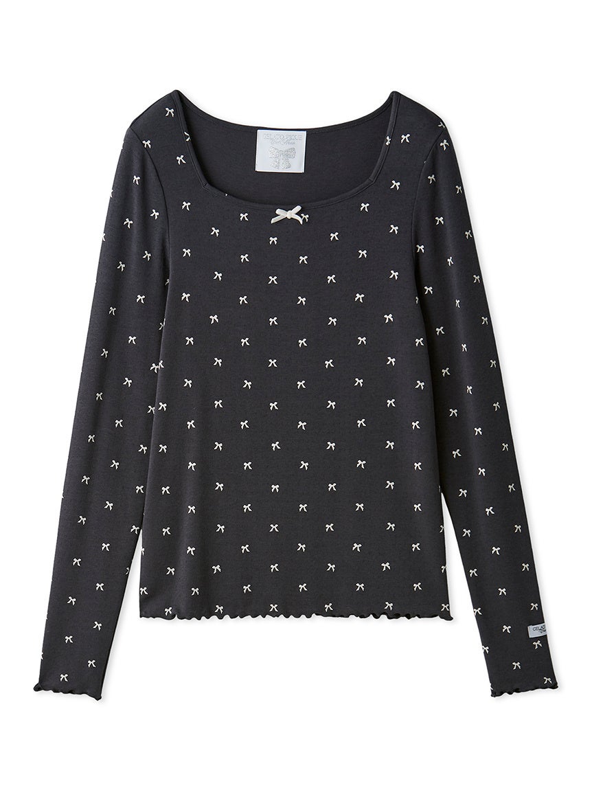 小さなリボンを総柄であしらい、ソフトな風合いと伸縮性を兼ね備えた針抜き生地を使用したカットソーシリーズ。