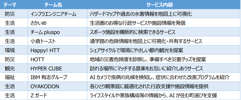 本件について、9月18日(日曜日)に「First Stage(提案者によるプレゼン大会)」を実施し、約60チームの提案から優秀な作品10件を選定いたしました。