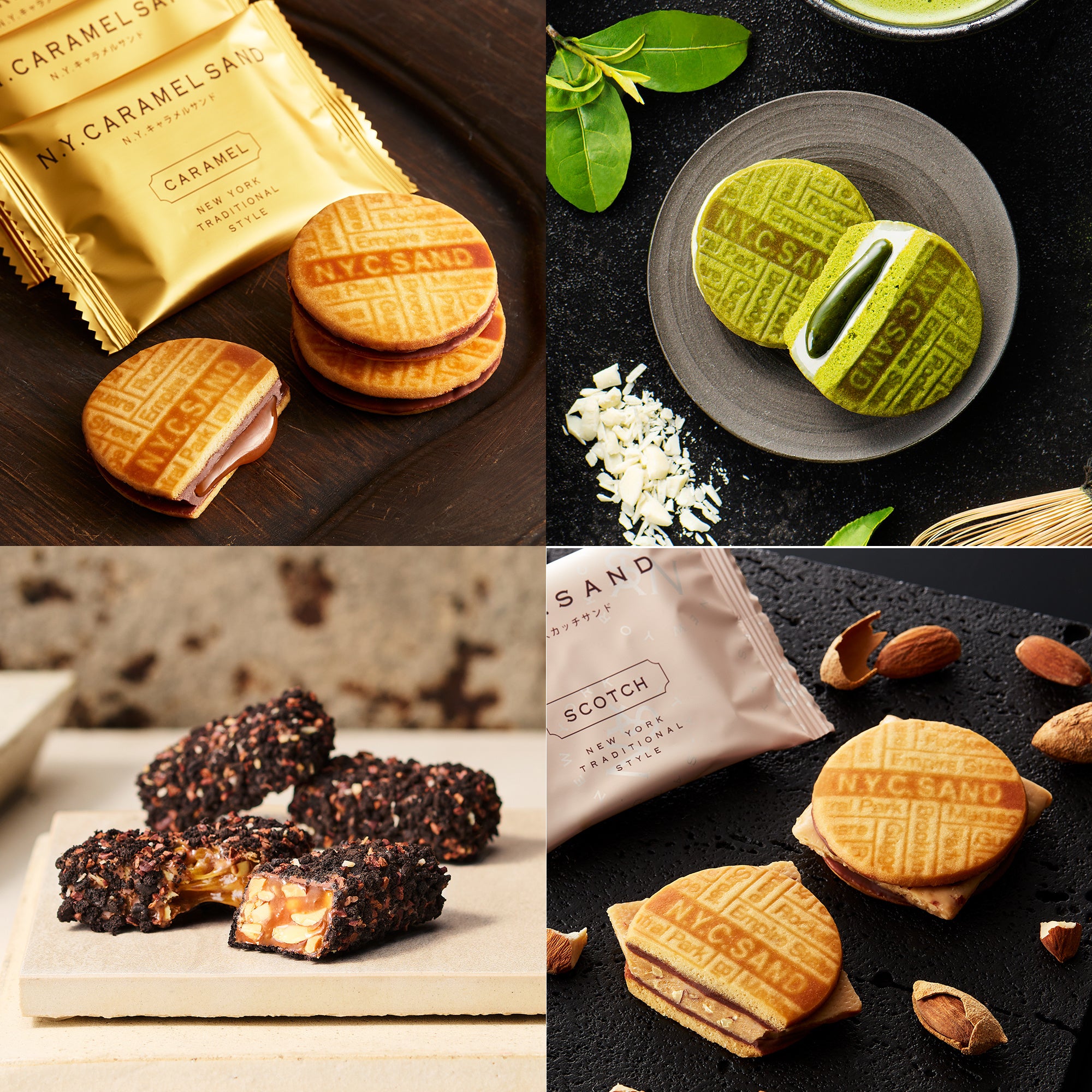 定番商品の「N.Y.キャラメルサンド」、「N.Y.スカッチサンド」、「N.Y.キャラメルブリック」に、期間限定の味「N.Y.抹茶キャラメルサンド」を入れた詰合せギフトボックスです。