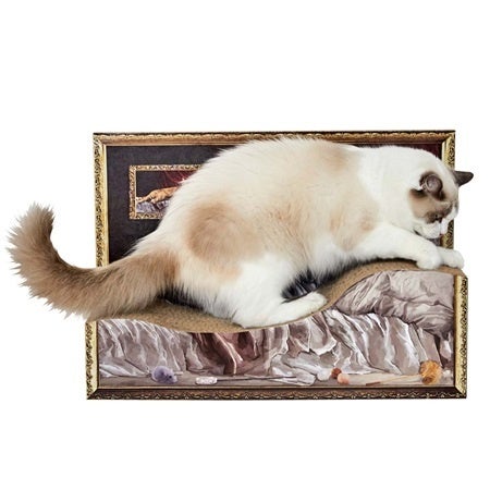 【NEW】猫がくつろぐ名画が完成 アートな裸婦画風つめとぎ