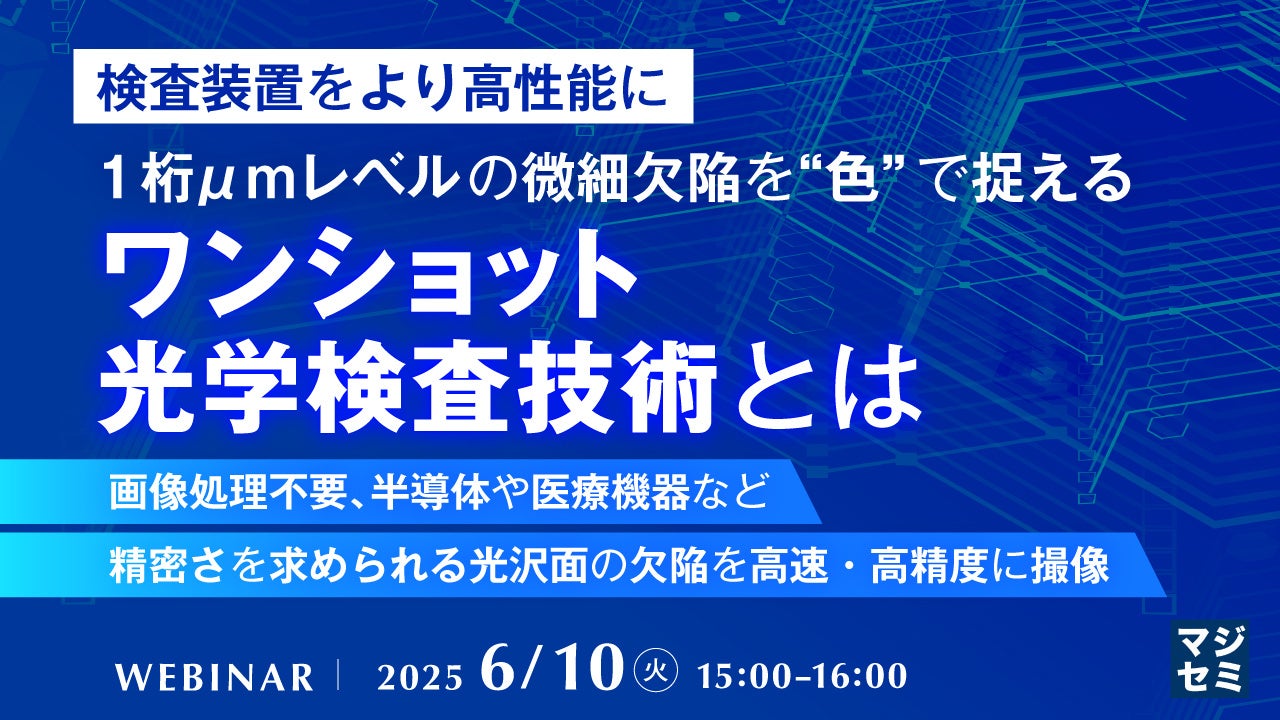 マジセミ株式会社は「【検査装置をより高性能に】1桁μmレベルの微細欠陥を“色”で捉える、ワンショット光学検査技術とは」というテーマのウェビナーを開催します。