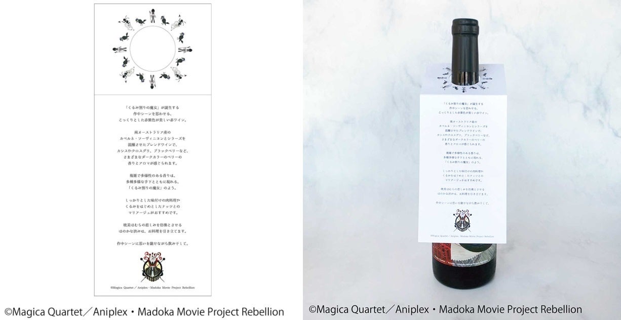フェリシモは、『劇場版 魔法少女まどか☆マギカ[新編]叛逆の物語』に登場する「くるみ割りの魔女」がテーマのオリジナルラベルワインの先行販売を神戸ポートタワー展望2階「Kobe Port Tower Shop by Felissimo[コウベポートタワー ショップ バイ フェリシモ]」で9月4日から開始しています。このワインの醸造所フェリシモ「f winery[エフワイナリー]」のワインから、くるみ割りの魔女の特性やデザインにマッチするフレーバーを、プランナーが醸造家と一緒にテイスティングしセレクトした、2023年のTVシリーズデザインに続く第二回目の魔女がテーマのワインです。『劇場版 魔法少女まどか☆マギカ[新編]叛逆の物語』は2013年に公開され、興行収入は深夜アニメの劇場版作品として初の20億円の大台突破を記録した作品です。作中に登場する魔女をイメージした限定メニューや撮影スポットが楽しめる『劇場版 魔法少女まどか☆マギカ[新編]叛逆の物語』スペシャルカフェ(8月1日~9月23日まで)を展開中の神戸ポートタワー展望3階、回転床のカフェ&バー「Ready go round[レディー ゴー ラウンド]」でもグラスワインで注文することができます。