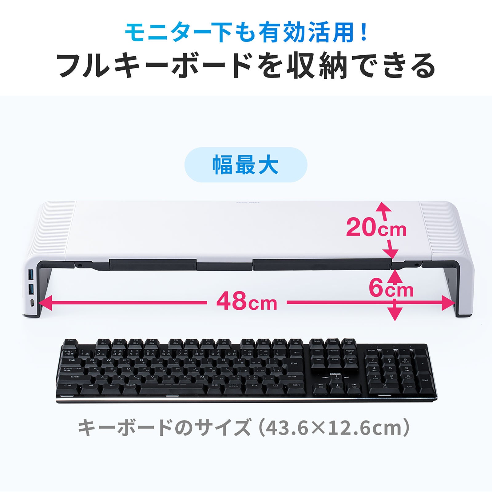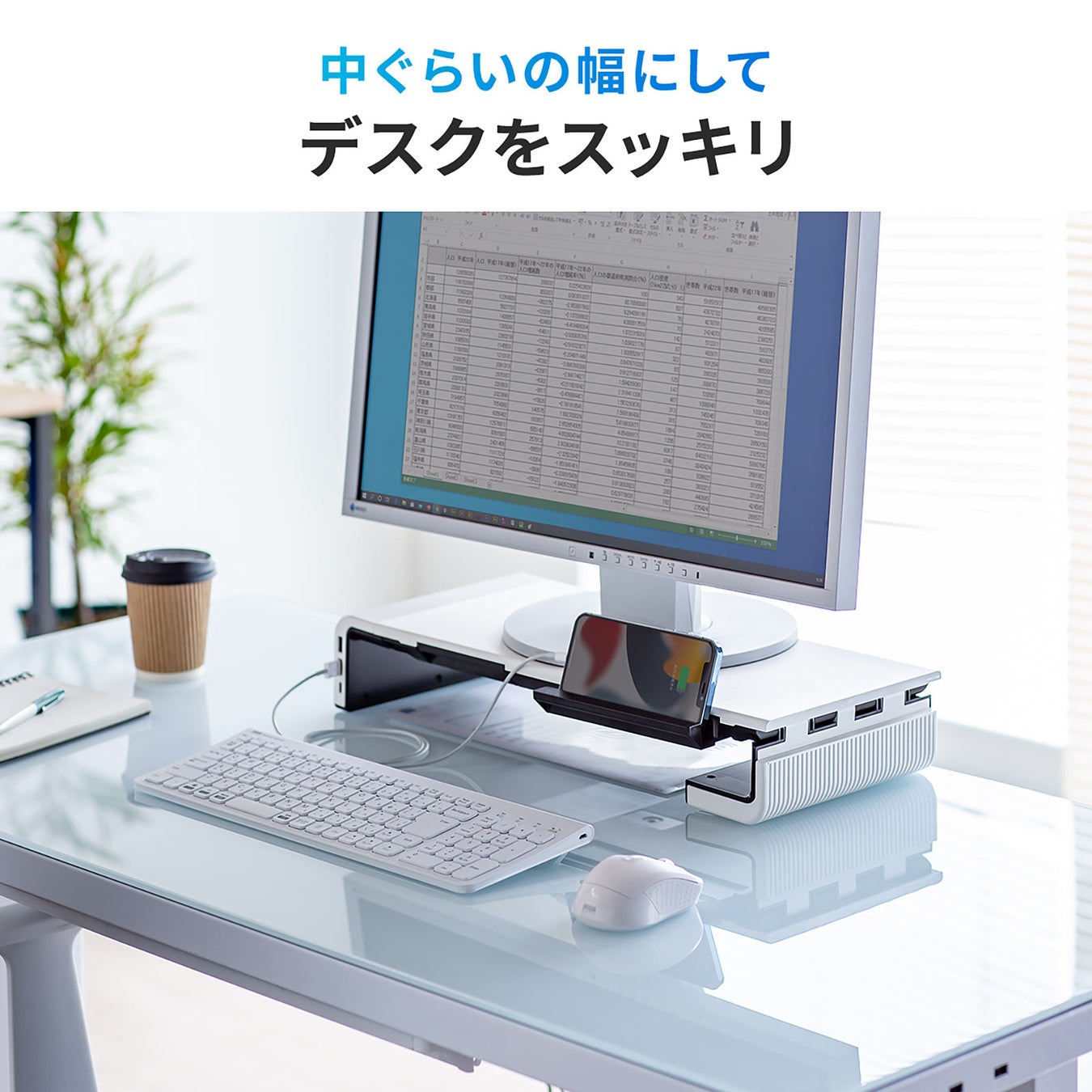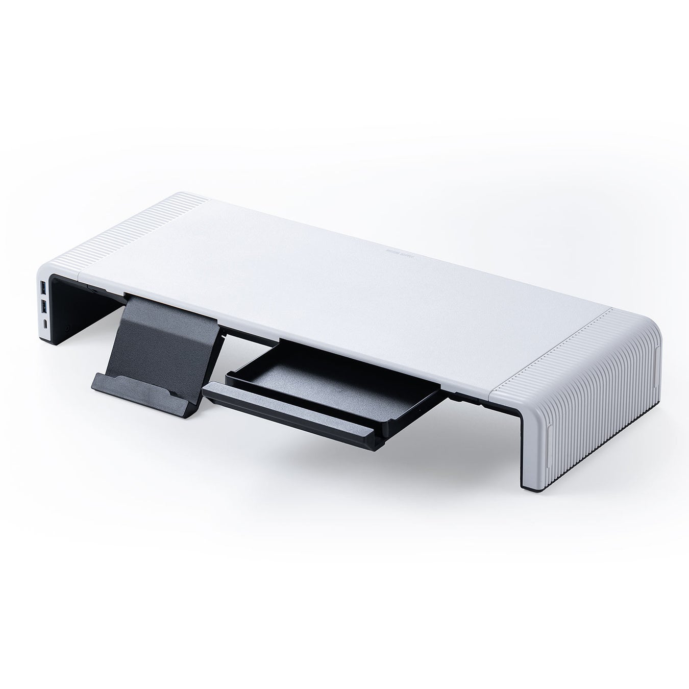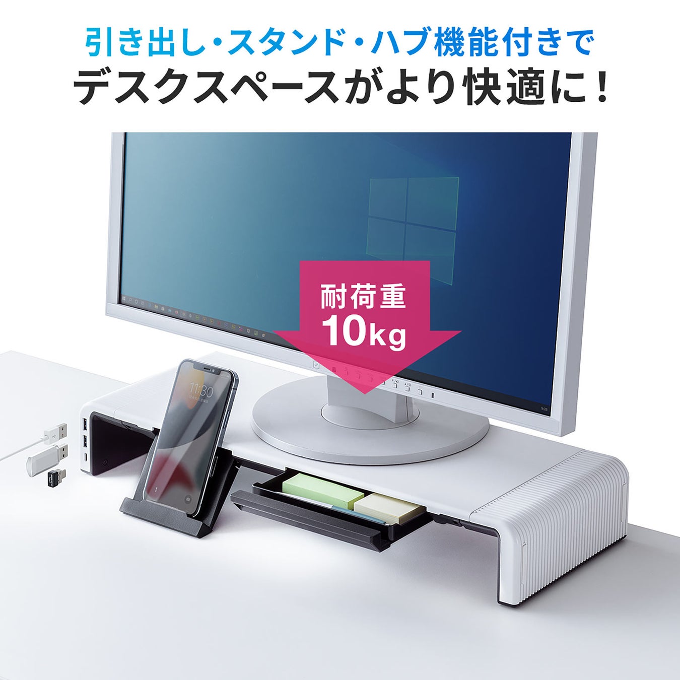 机上台 モニター台 USBハブ付 Type-C対応 引き出し付 幅3段階調整対応 Type-A接続