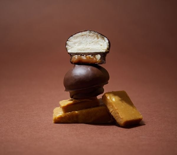 こだわりのブラウンチーズと、ふわっと軽やかなメレンゲ、その周りを包みこむなめらかなチョコレート。「さくっ、シュワッ、とろ〜っ」の新食感プレミアムスイーツ。3 つのとろける食感をお楽しみいただける、スノードームのような愛らしいフォルムのお菓子です。