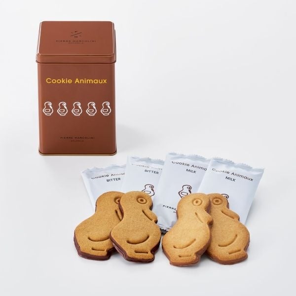 人気のチョコレート「アニモ キャラメル」のアヒルをモチーフにしたクッキーを詰め合わせました。キャラメルを混ぜ込み香ばしく焼き上げビターチョコレートでコーティングした「ビター」と、バタークッキーをまろやかなミルクチョコレートでコーティングした「ミルク」の2種類のフレーバーをお楽しみください。