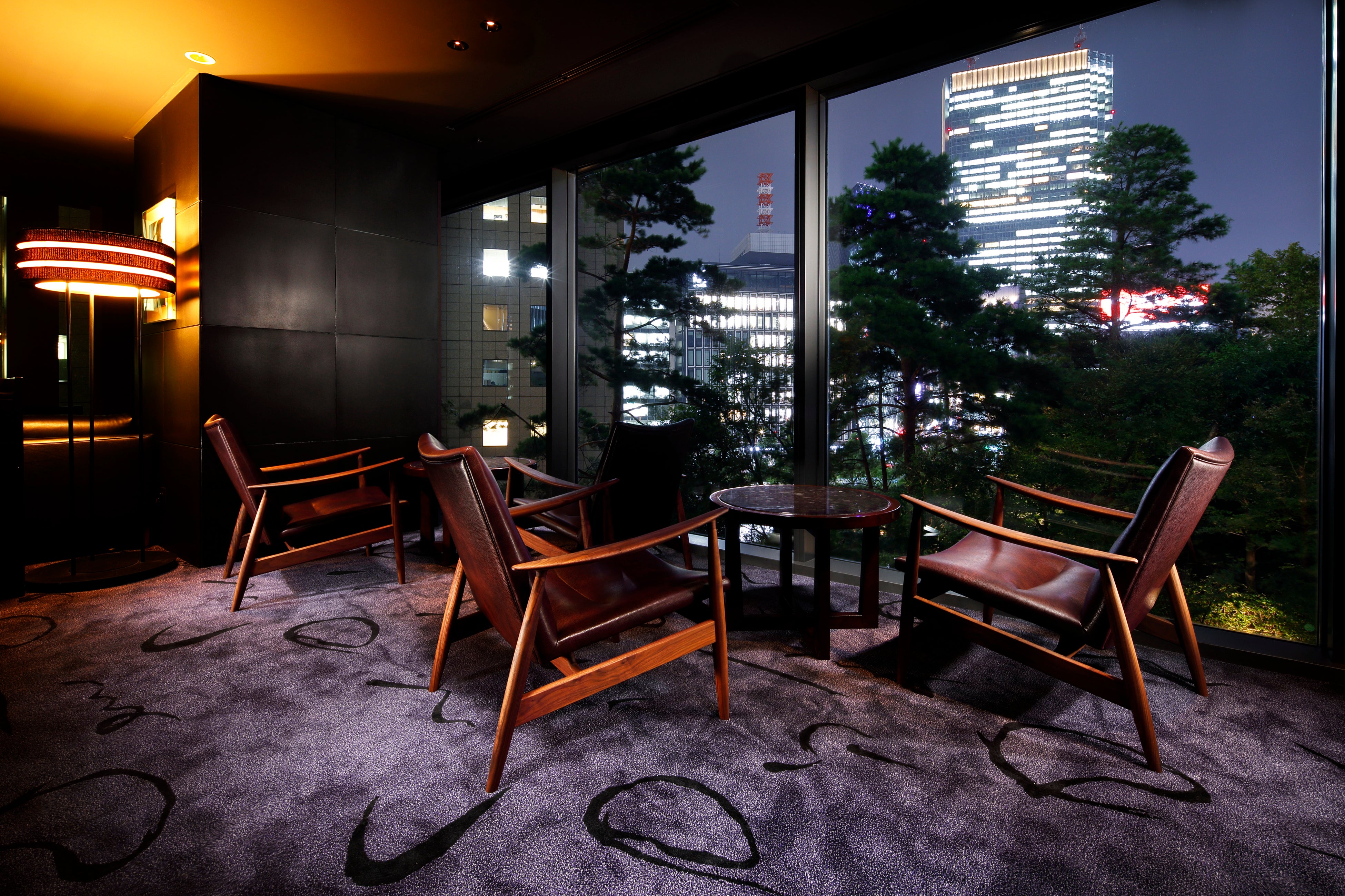 ロビーの吹き抜けに面したハイカウンター、そして庭園の緑と赤坂の街並みを臨むラウンジ、2つの表情を持つ都会的な趣。重厚で落ち着いた雰囲気のなかで一日の緊張を解きほぐし、ゆったりとお寛ぎいただけます。シガーもご用意しております。