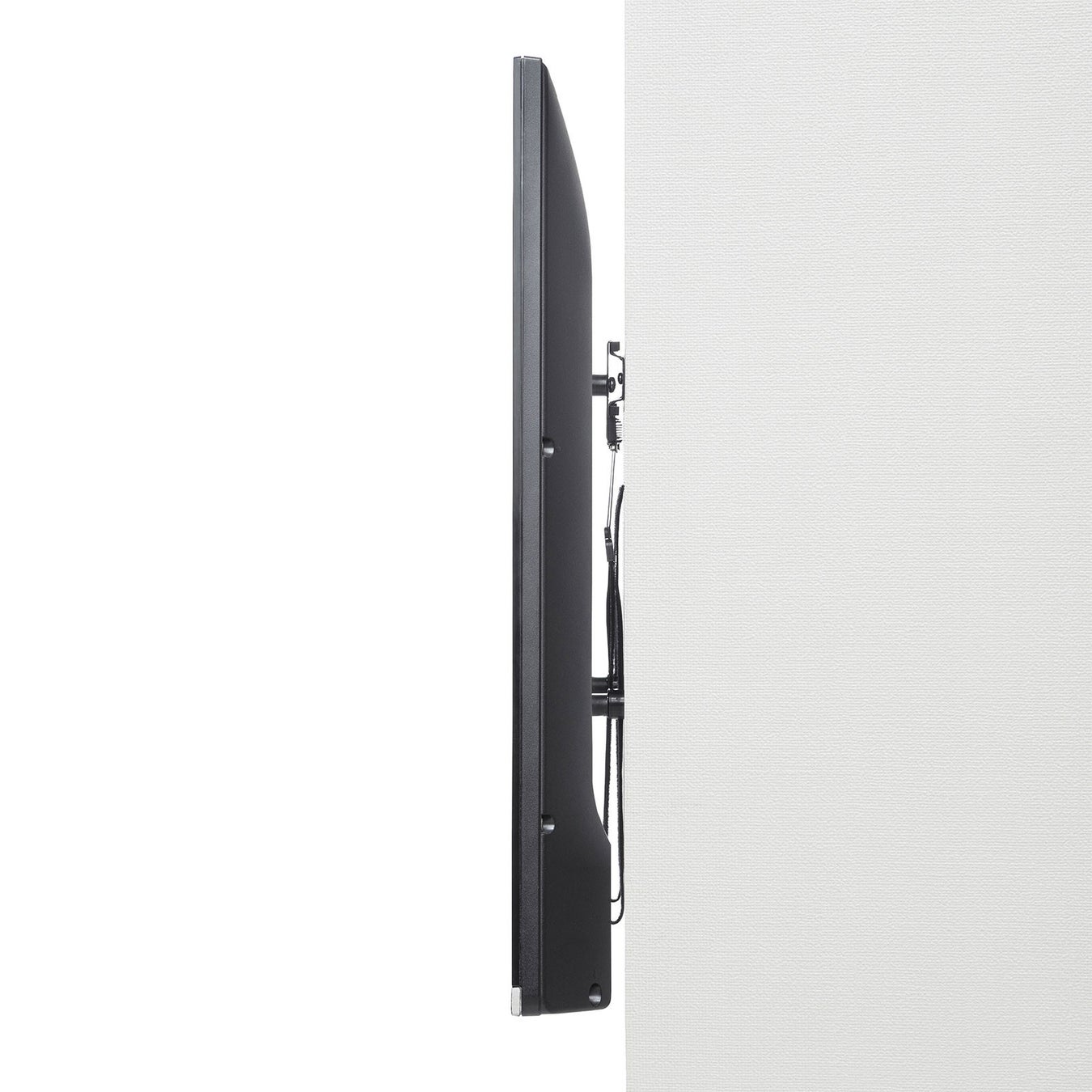 壁面にディスプレイを取り付けることで、省スペースにディスプレイの設置ができるようになります。厚さ12mmの超薄型タイプなので、出っ張りが少なく、壁に張り付いたようなスマートな仕上がりになります。ディスプレイから金具がはみ出さないので、見た目もすっきりします。