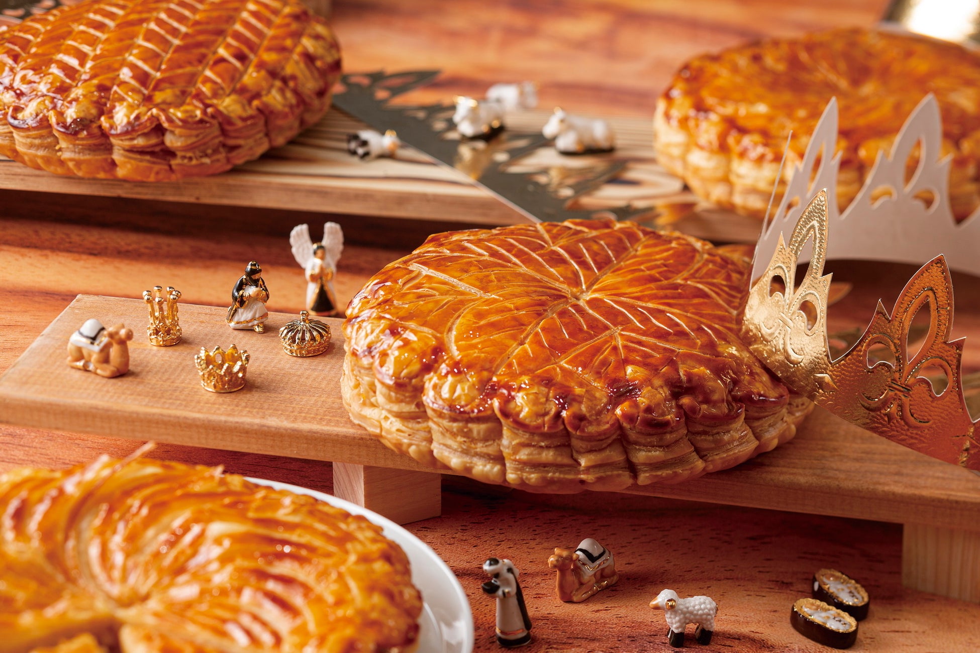 3種類のガレット・デ・ロワには、バター100%で折り上げた生地にアーモンドの女王と呼ばれる世界的にも希少なスペイン産マルコナ種を使ったクリームを閉じ込めて焼き上げ、香り高く、深い味わいがお楽しみいただけます。