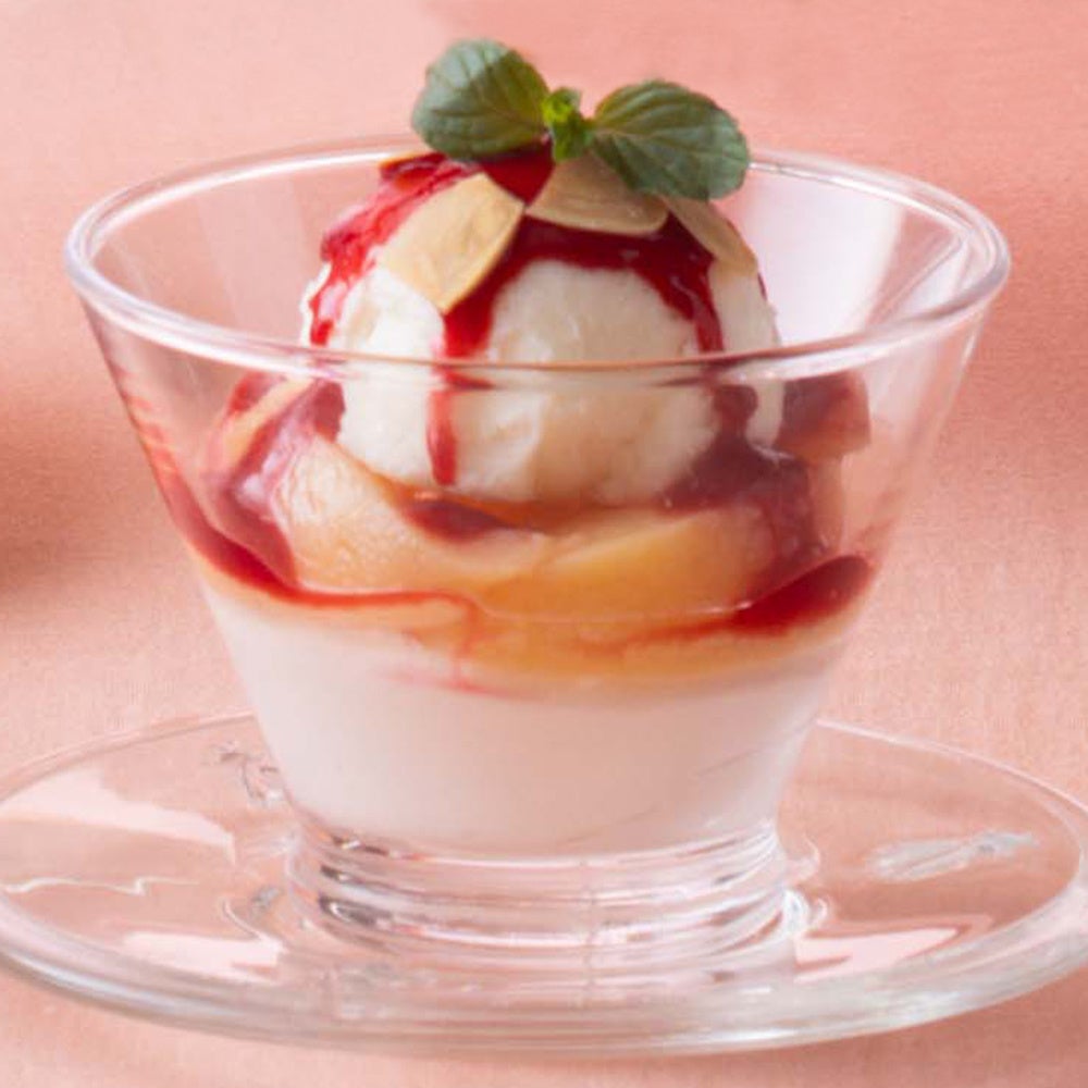 桃とベルベーヌのヴェリーヌ、ヤオルトペッシュ、ジャスミンゼリー、桃のスープ、桃とキャラメルのパンナコッタ、ソフトクリーム、窯焼きピッツァ、ジューシーに焼き上げたローストビーフ、パルミジャーノ・レッジャーノで仕上げるカルボナーラ ほか