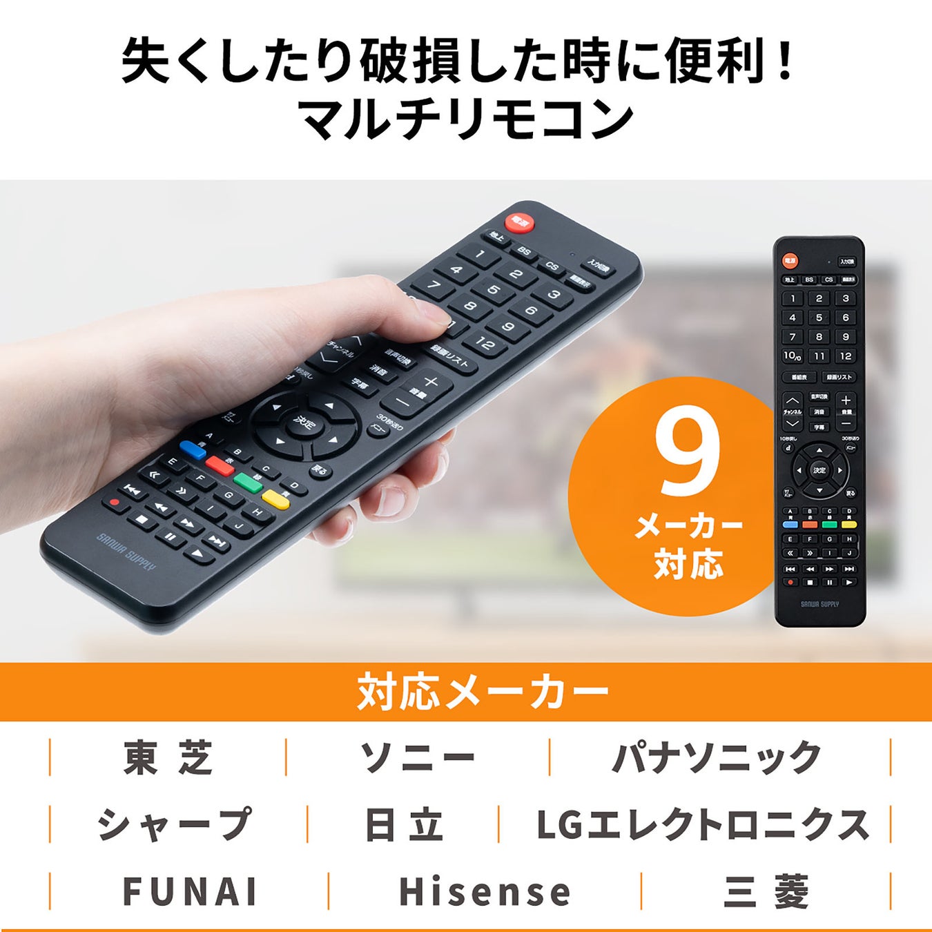 サンワサプライ株式会社(本社:岡山市北区田町1-10-1、 代表取締役社長 山田 和範)が運営している直販サイト『サンワダイレクト』では、主要な9社のテレビに対応した汎用テレビリモコン「400-TVMULTI」を発売しました。
