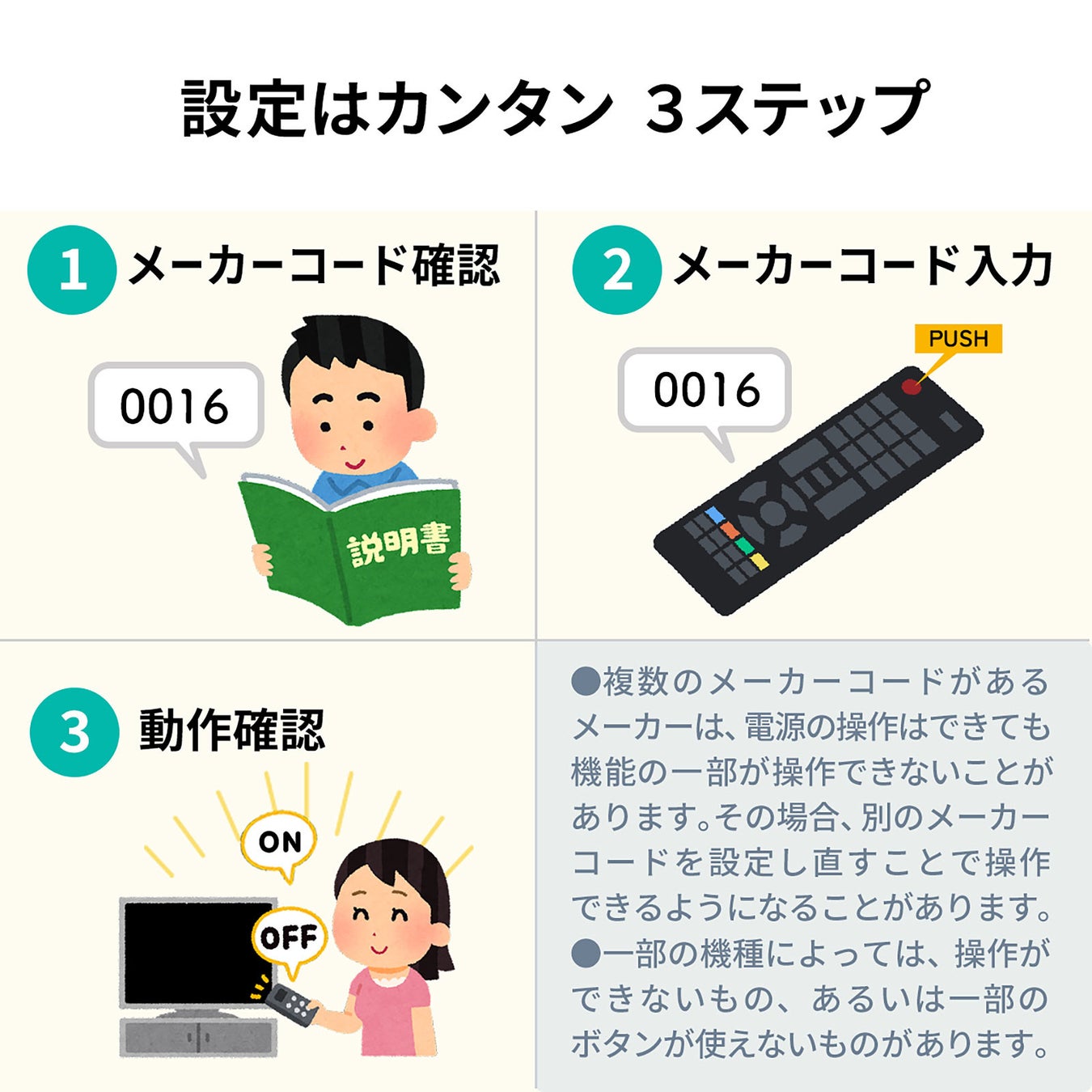 本製品は、東芝、ソニー、日立、LG、パナソニック、シャープ、FUNAI、Hisense、三菱のテレビに対応した汎用リモコンです。