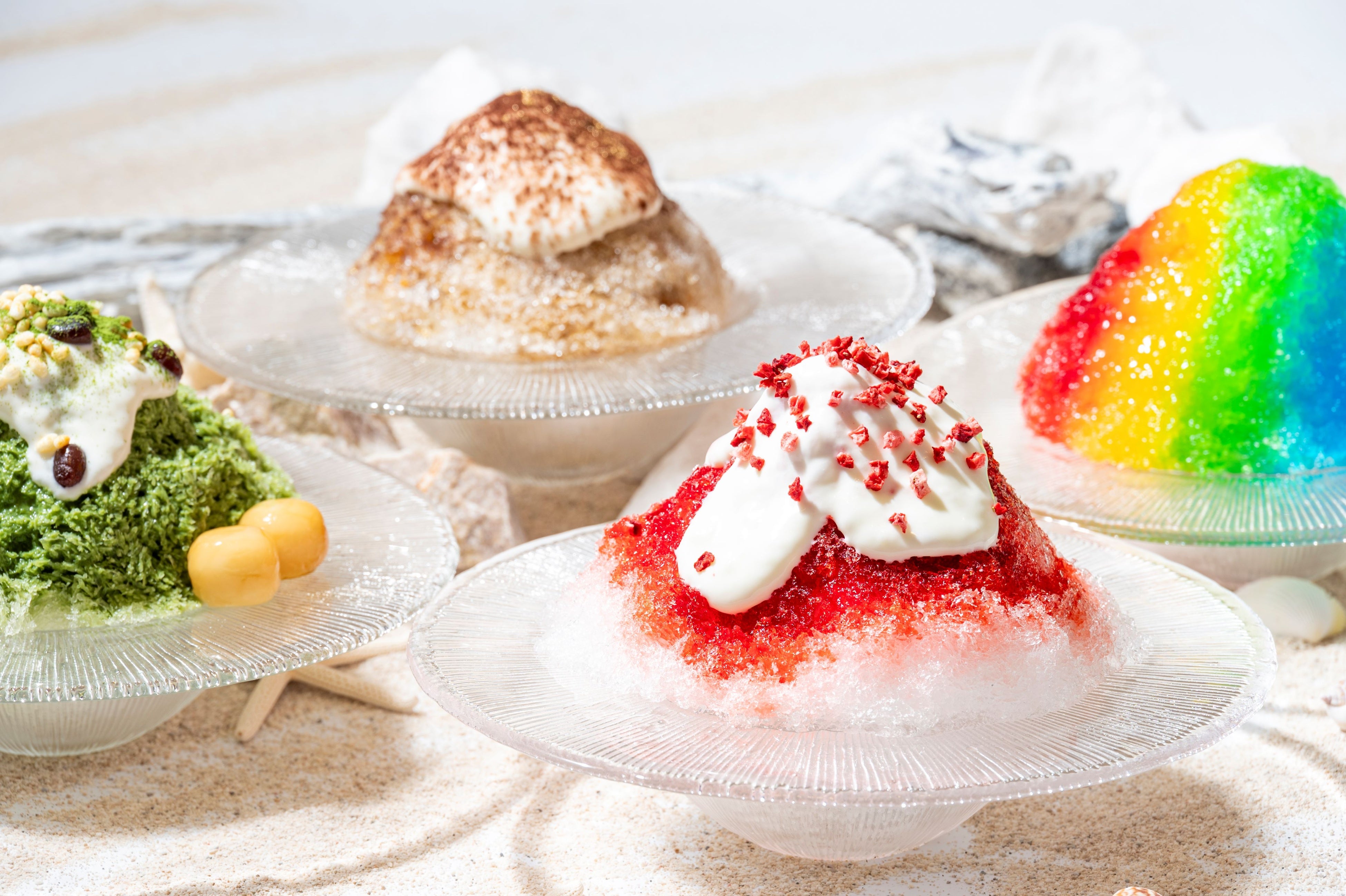 昨年、初めて登場しご好評をいただいた“夏氷”を、今年は趣を変えてご用意。渋谷の街に本格的な夏が訪れるなか、涼やかなひと皿で心地よいクールダウンをお届けします。澄み切った純氷をふわりと削り出した“夏氷”は、ノスタルジックな優しい甘さの「いちご練乳」、日本の伝統的な甘味「宇治金時」、ほろ苦さと甘みが絶妙に重なる「ティラミス」、そしてハワイで人気のシェイブアイスをモチーフにした「HAWAIIANレインボー」の全4種。中央アルプスと南アルプスを愛でる水環境で育まれた信州深層天然水をじっくりと凍らせた純氷とホテルオリジナルの特製シロップを使用し、パティシエのこだわりが息づく一品に仕上げました。