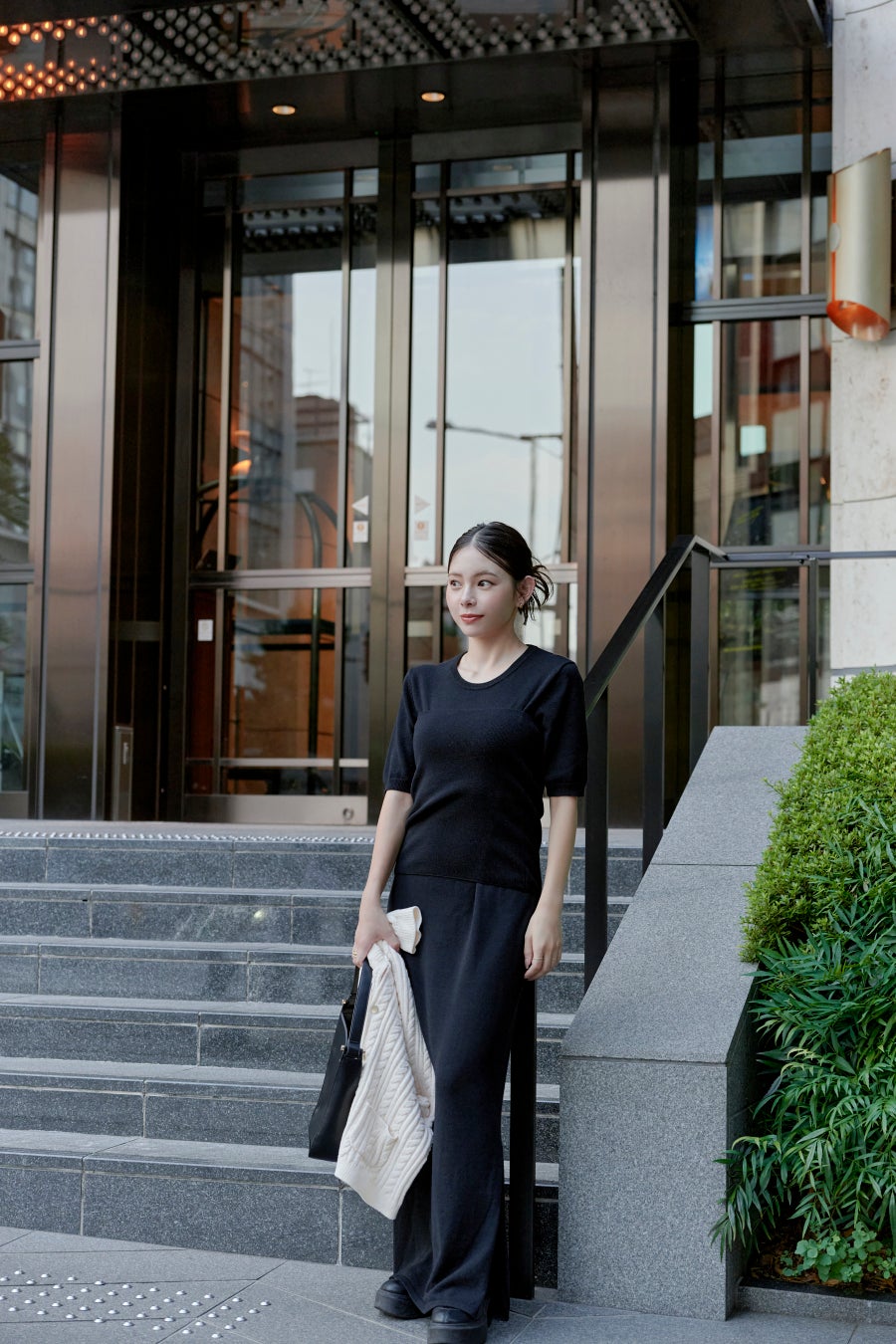 シンプルだけどこなれて見えるような長めのシルエットだったり、着痩せしてみえるように計算したウエストのくびれもポイントです。