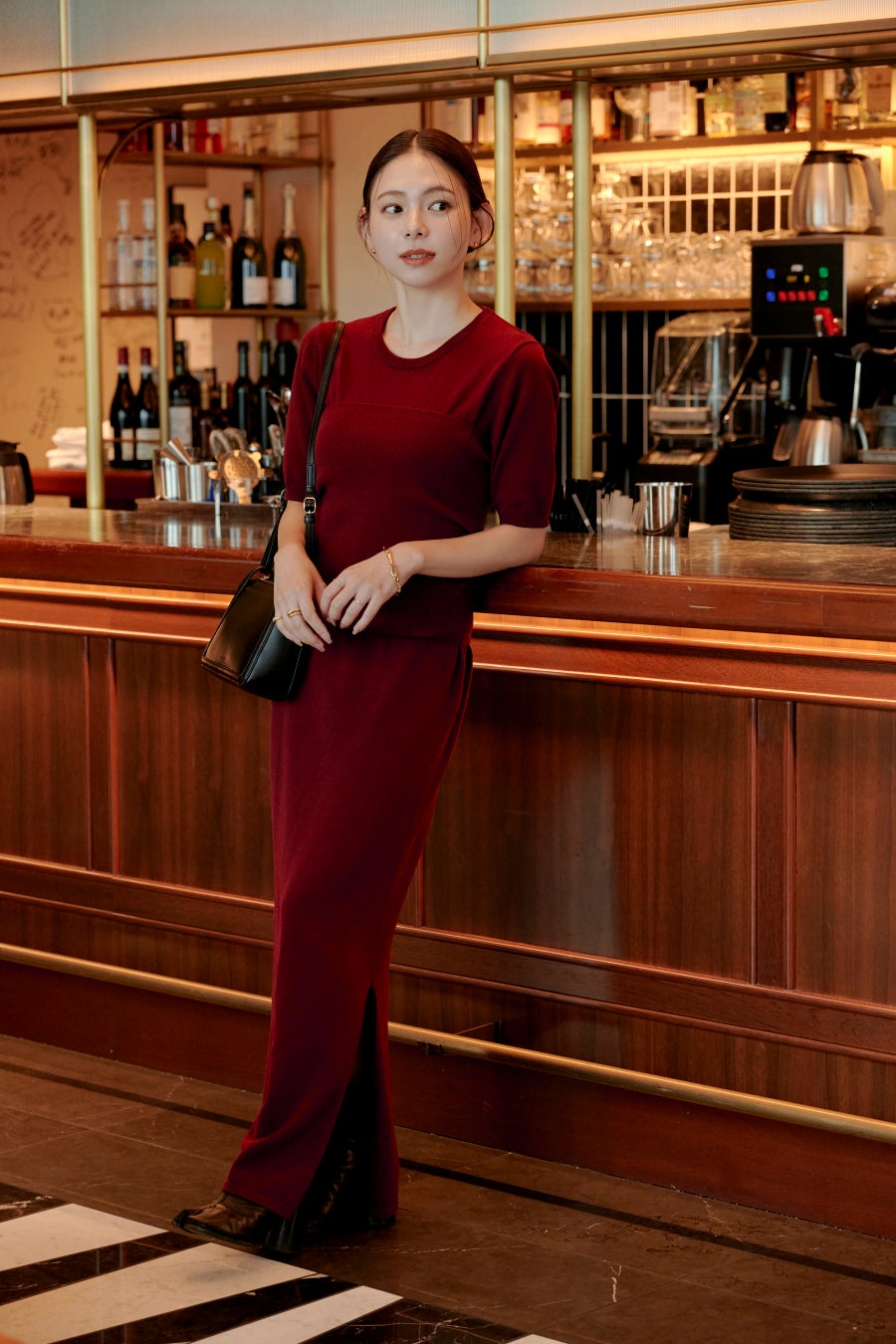 華やかさのあるワインカラーは、お出かけスタイルにも最適。