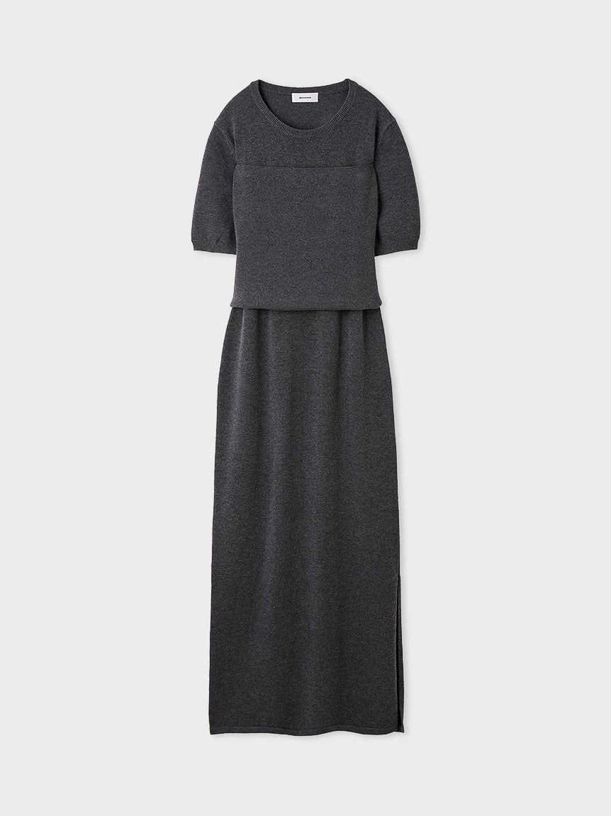 ニットビスチェがセットになった、デイリーに活躍するコンフォートなニットワンピースを全4色で展開いたします。