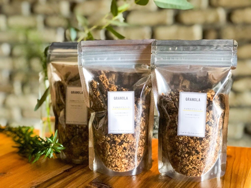 オープン当初、店内のパフェに使っていたところ『このグラノーラ売ってないですか?』から商品になったそば粉のオヤツ第1号!リピーターの多い人気商品です!