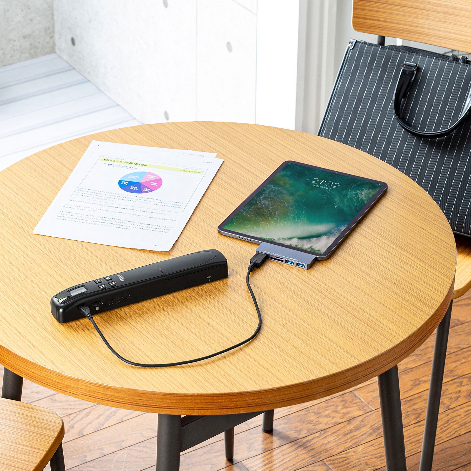 また、お手持ちの機器のコネクタに対応した変換アダプタ(別売り)を使用することで、スキャンした画像をスマートフォンやタブレットでも確認することができます。
