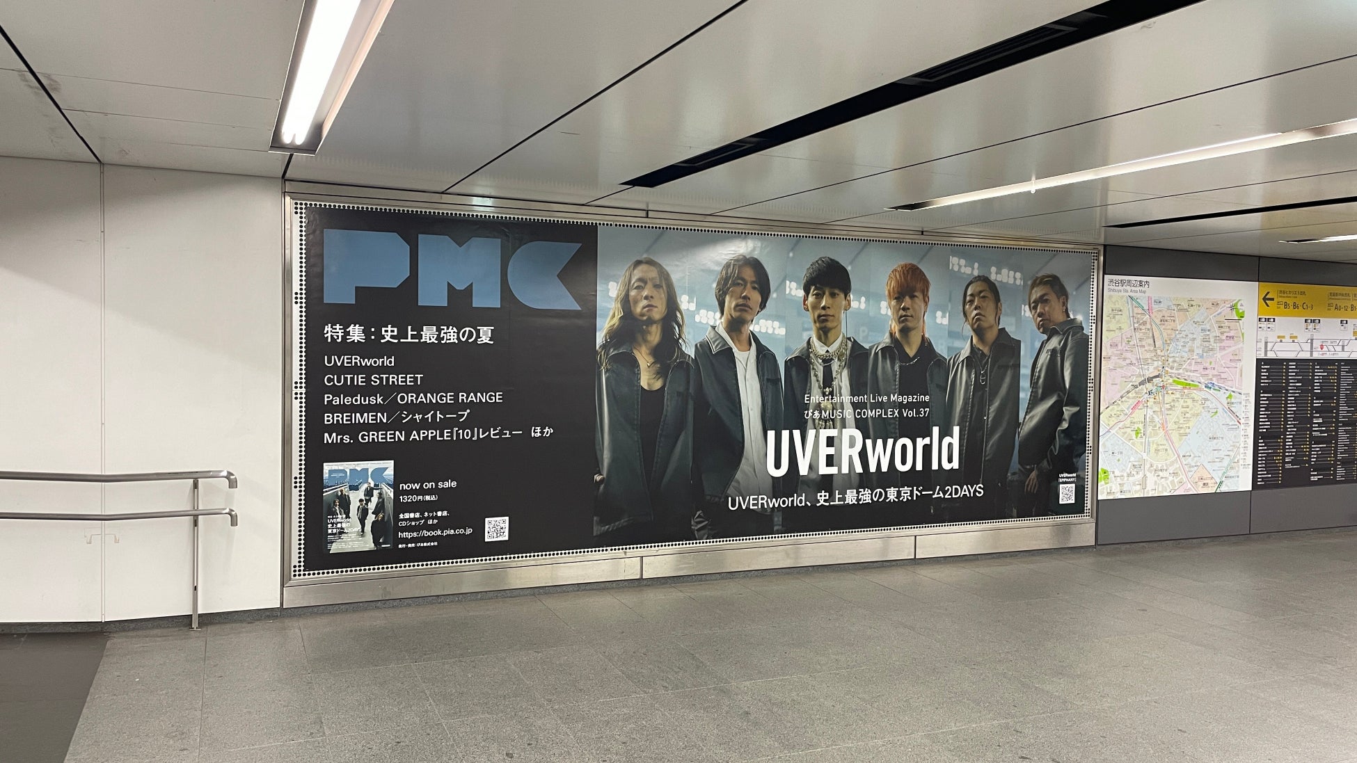 UVERworld表紙&50P超の大特集『PMC Vol.37』。明日7/15(火)発売! 本日7/14(月)より、東京・東横線渋谷駅にてUVERworld写真使用の大型ビルボード掲出開始!