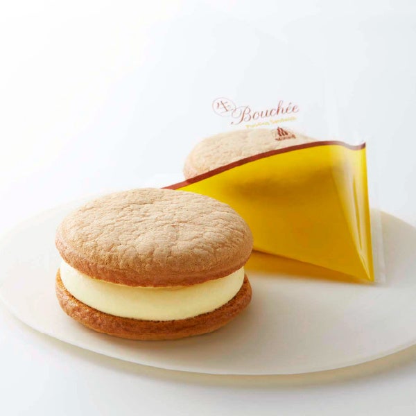 ふんわりと焼き上げたビスキュイに2層に充填したプリン風味のクリームをサンド。