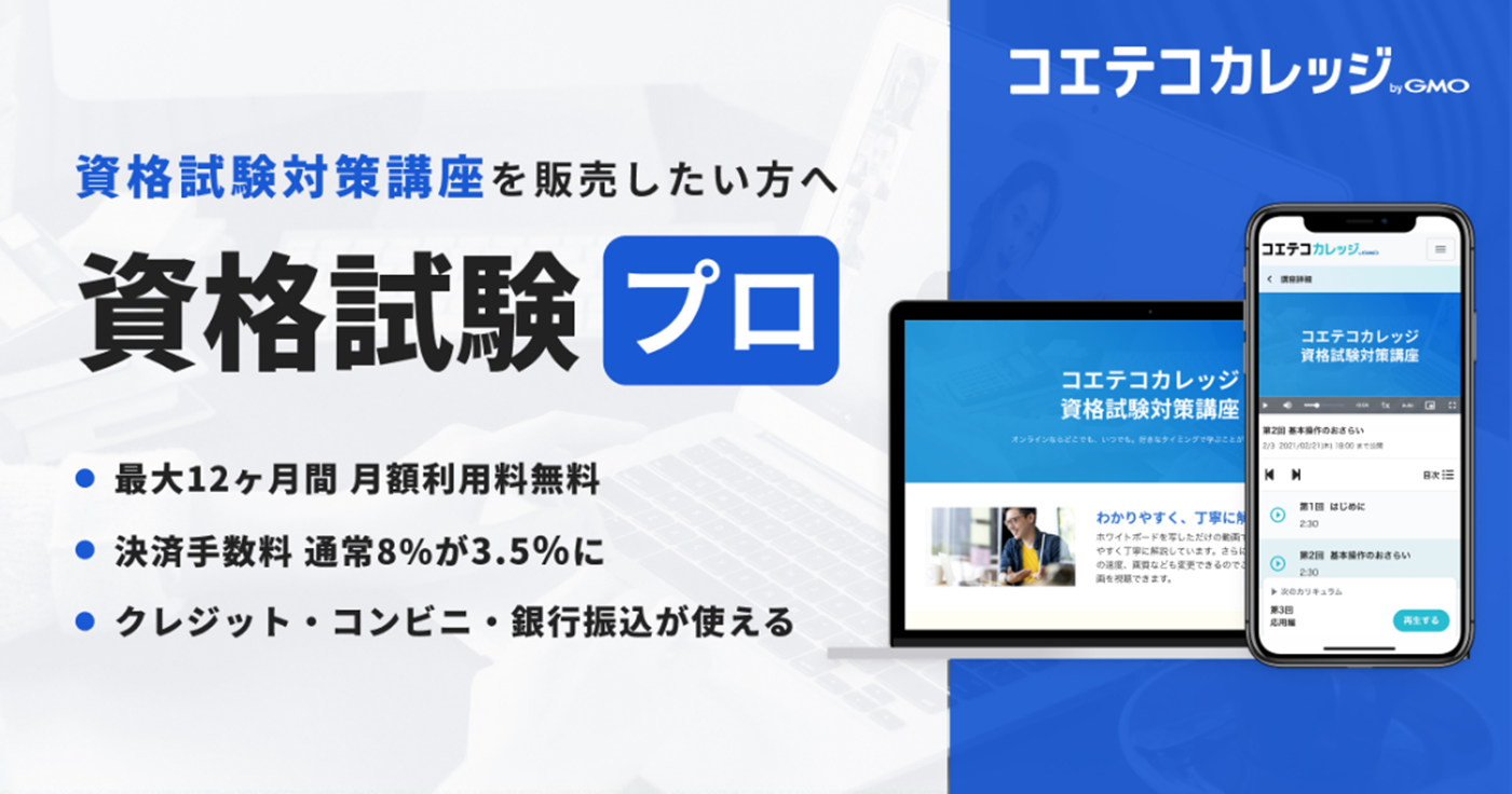 オンライン講座販売管理プラットフォーム「コエテコカレッジ byGMO」、資格試験対策講座販売に特化した『資格試験プロ』プランの提供を開始