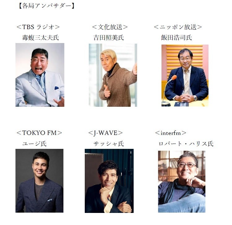 参加ラジオ局: 株式会社TBSラジオ、株式会社文化放送、株式会社ニッポン放送、株式会社エフエム東京(TOKYO FM)、株式会社J-WAVE、株式会社InterFM897