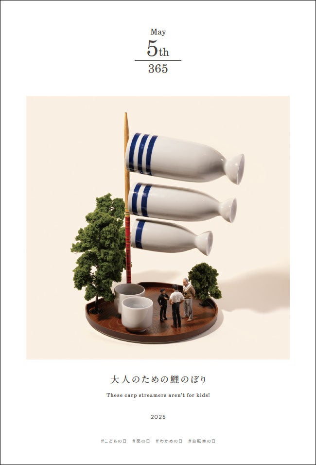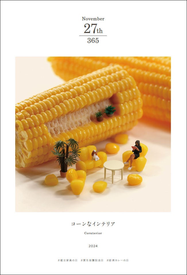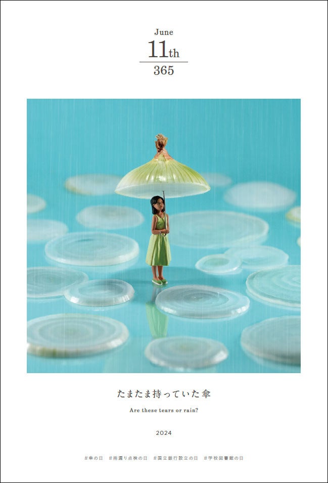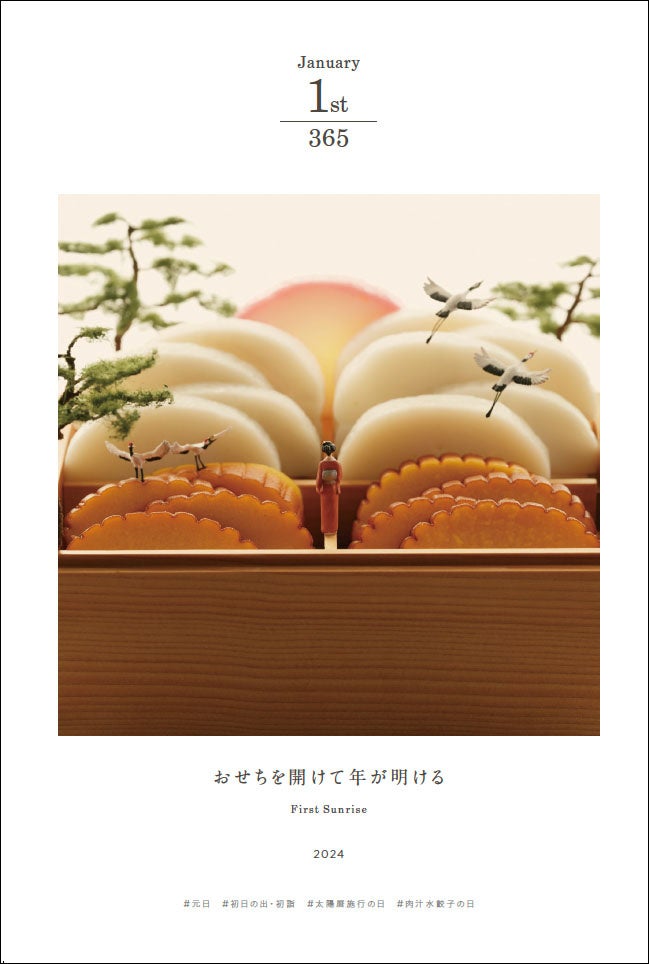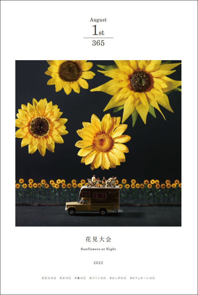 本書は、15年間に制作・撮影された5,000点以上の作品群の中から、1ページ1日1作品とし、1年分の作品を田中氏が厳選。「自分基準で作品を選びたくなかった」という著者のこだわりから、伝統行事や毎日、必ず何かしらある設定されている「○○○の日」とリンクする作品を掲載することで、見た人の共感を得られるような楽しい構成となっている。