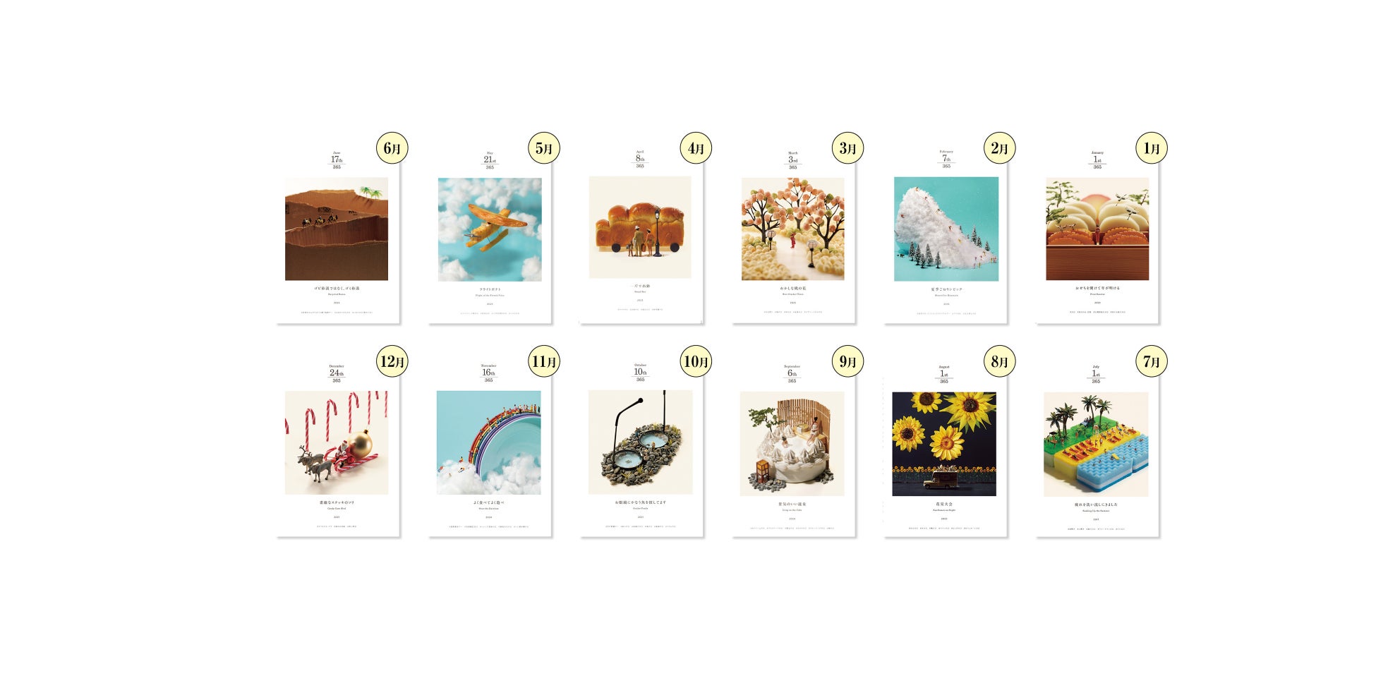 本書では、15年間にわたって作り続けてきた膨大な作品の中から、その日の記念日や行事にふさわしい「今日の1枚」を厳選しました。あなたの誕生日は、どんな作品で彩られているでしょうか。