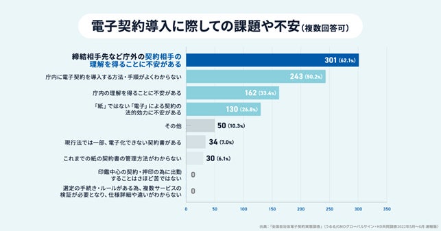 ※より詳しいアンケート結果は、報道関係者用の添付資料をご確認ください。なお、電子契約の導入担当者の自治体職員様には、無料で詳報版レポートをお送りいたしますので、末尾のサービス関係お問い合わせ先(GMOグローバルサイン・HD デジタル・ガバメント支援室)までご連絡ください。報道関係者の方は、末尾の「報道関係者お問い合わせ先」までご連絡ください。
