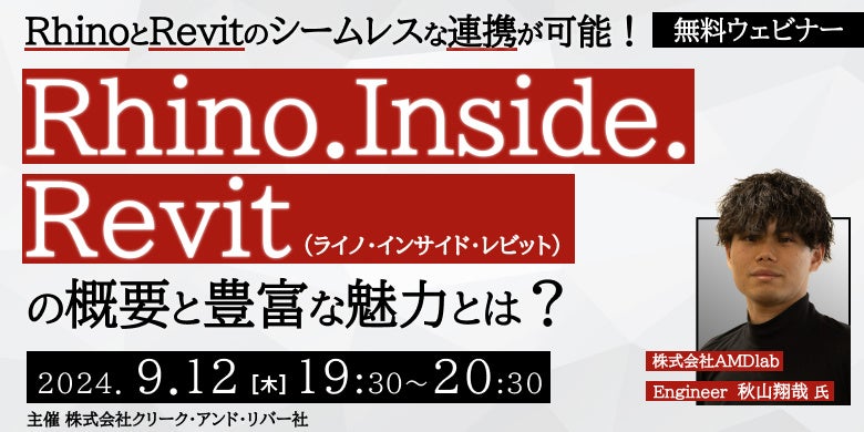 株式会社クリーク・アンド・リバー社(C&R社)は9月12日(木)、建築設計士やBIMモデラーの方を対象に、無料のオンラインセミナー「RhinoとRevitのシームレスな連携が可能!Rhino.Inside.Revitの概要と豊富な魅力とは?」を開催します。