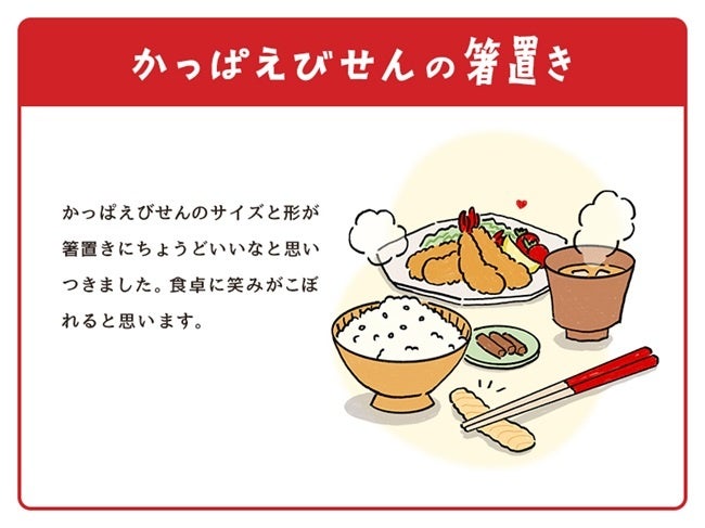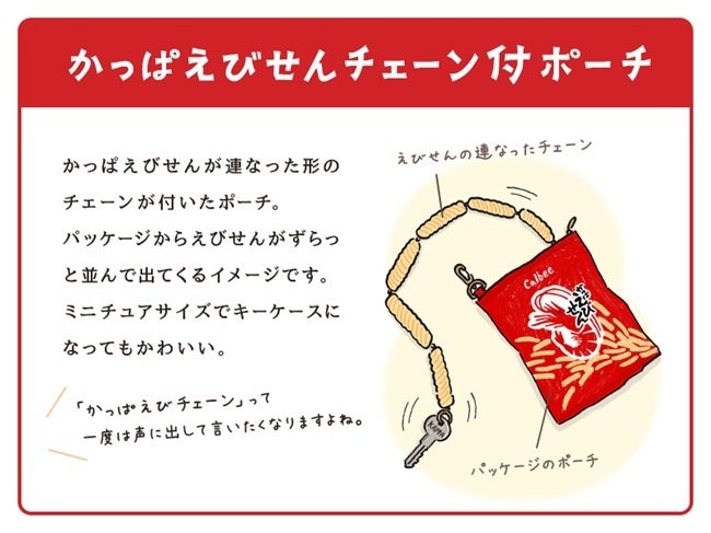 かっぱえびせんのキャッチコピーである“や(8)められない、と(10)まらない♪”にちなんだ8月10日「かっぱえびせんの日」から、「こんなの欲しい!かっぱえびせん雑貨」の妄想アイデアの募集を開始しました。