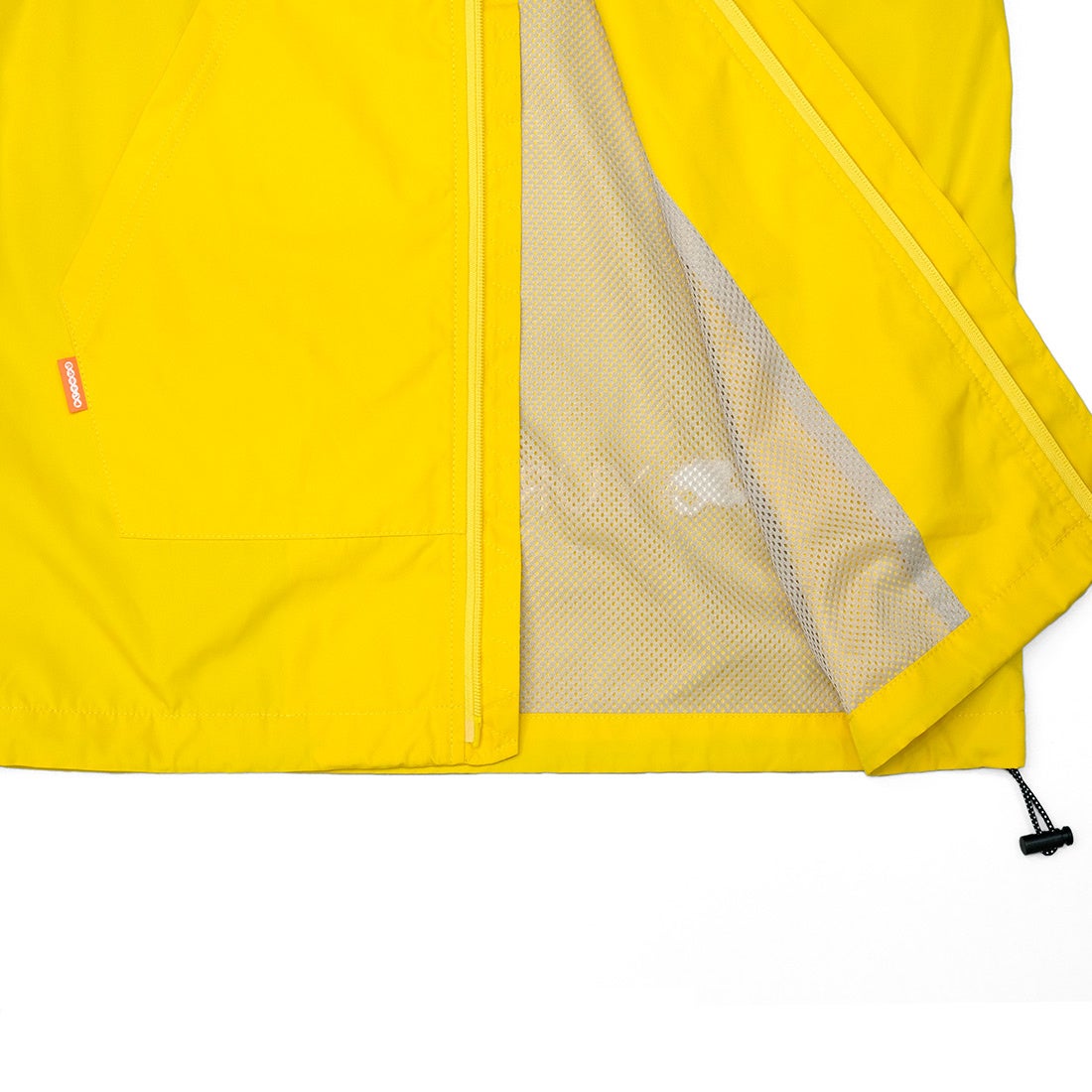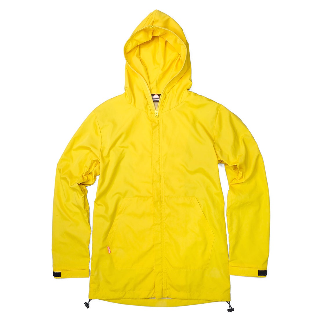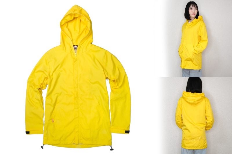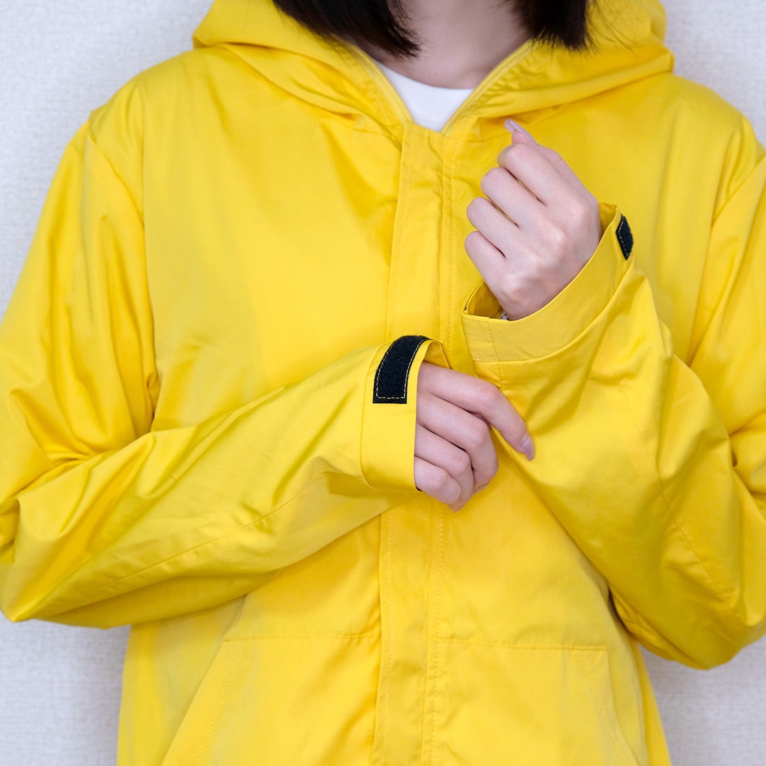 ダブル仕様のフロントファスナーはフード先端まで伸びていて、裾にはシルエットの調節可能なスピンドルも装備。