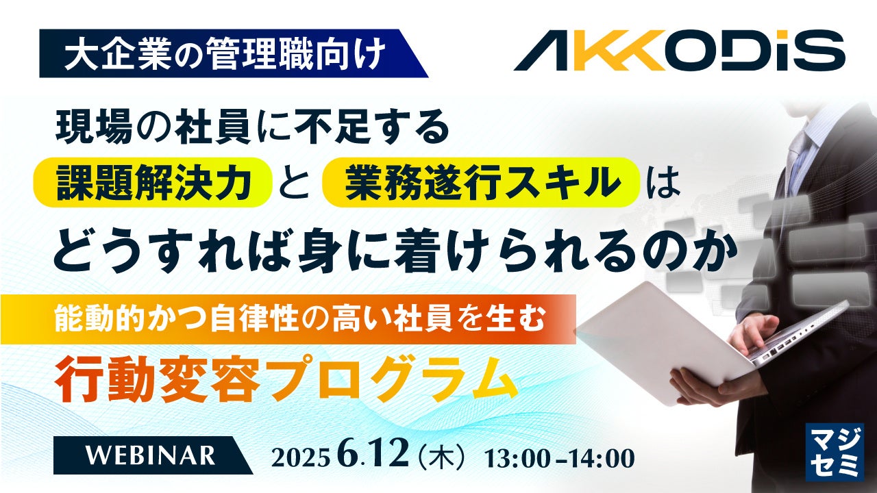 マジセミ株式会社は「【大企業の管理職向け】現場の社員に不足する課題解決力と業務遂行スキルはどうすれば身に着けられるのか」というテーマのウェビナーを開催します。