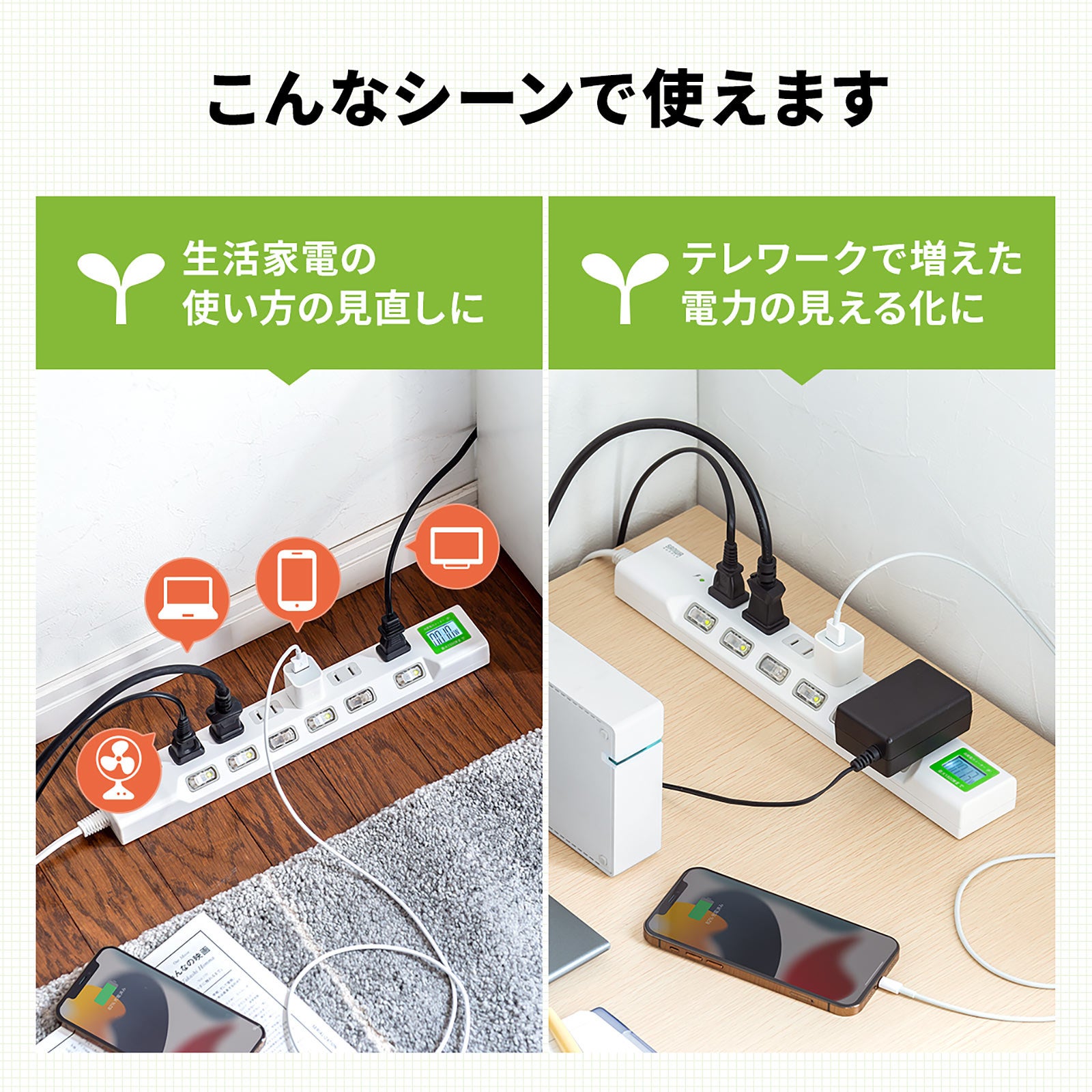 電力を見える化して節電に!消費電力が分かるワットメーター付き電源タップを7月5日発売