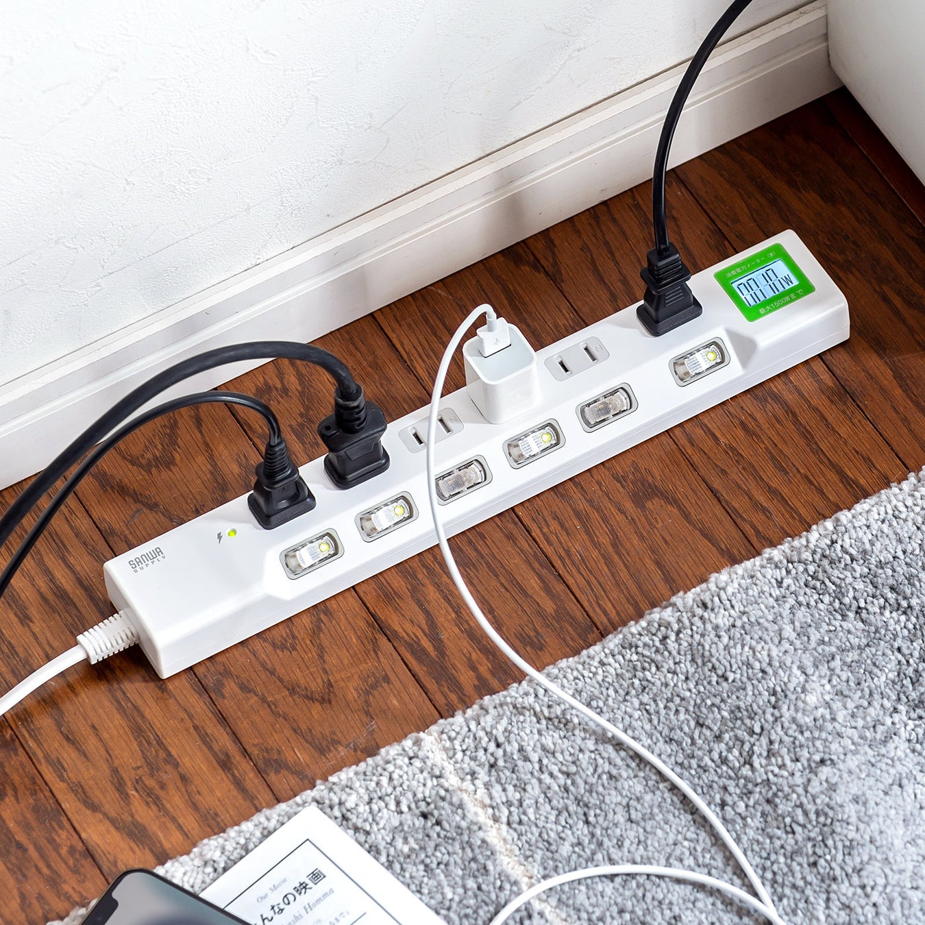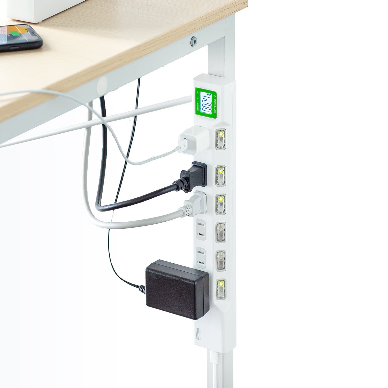 本製品は、使用量が一目でわかるワットチェッカー付き節電タップです。
