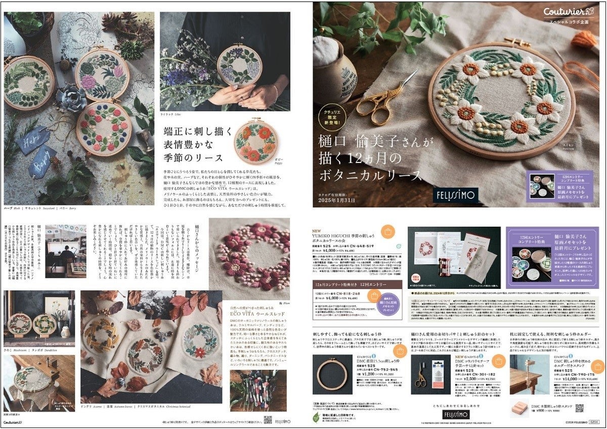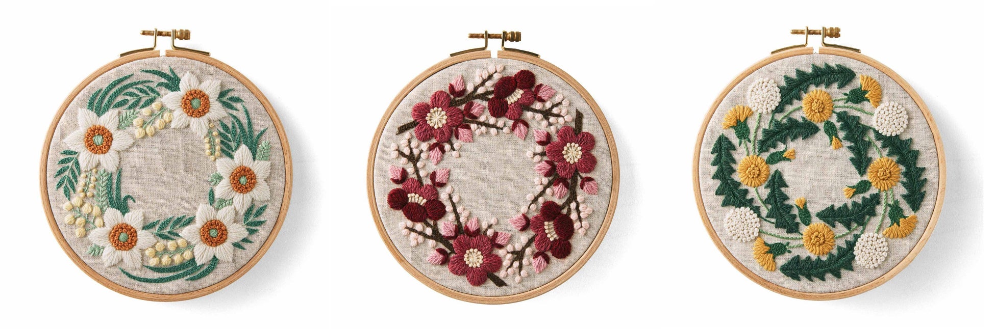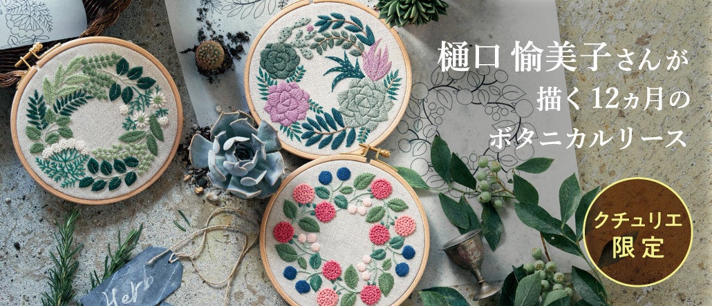 4年ぶりのコラボ!刺しゅう作家 樋口 愉美子さんがデザインした12ヵ月のボタニカルリースの刺しゅうキットがフェリシモ「Couturier[クチュリエ]」から新発売