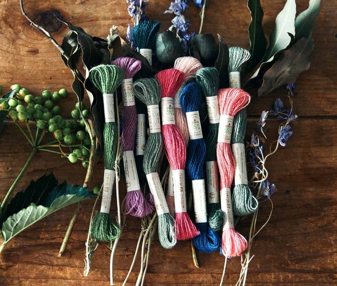1946年にフランスで創業した、世界的高級刺繍糸メーカーDMC社の新作刺しゅう糸。細番手のオーガニックメリノウールの刺しゅう糸は開発に3年の月日を要し、発売からさっそく多くの刺しゅうファンをとりこにしています。クルミやルバーブ、インディゴなど、100%天然の染料を使った自然な色合いが魅力です。今回のキットには、この「エコヴィータ ウールスレッド」の自然素材ならではの温かみと、美しい発色により、一層繊細で美しい作品に仕上がります。