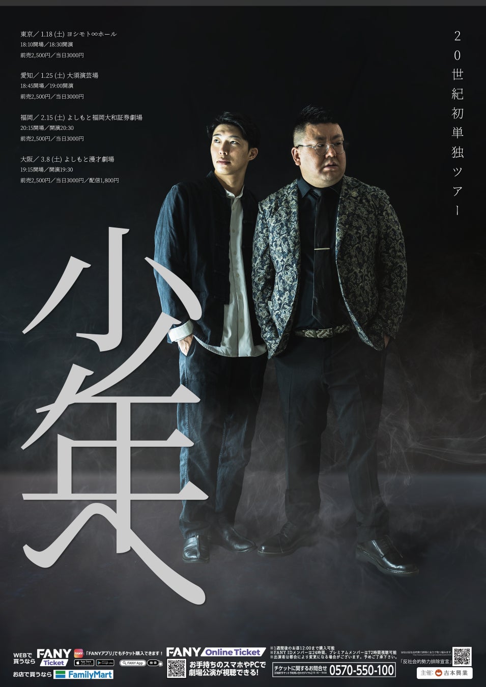 昨年には、M-1グランプリ2023準決勝へ進出し、過去にはキングオブコント2021準決勝進出するなど、次世代ブレイク芸人と呼び声髙い「20世紀」を堪能できるツアーとなっております。