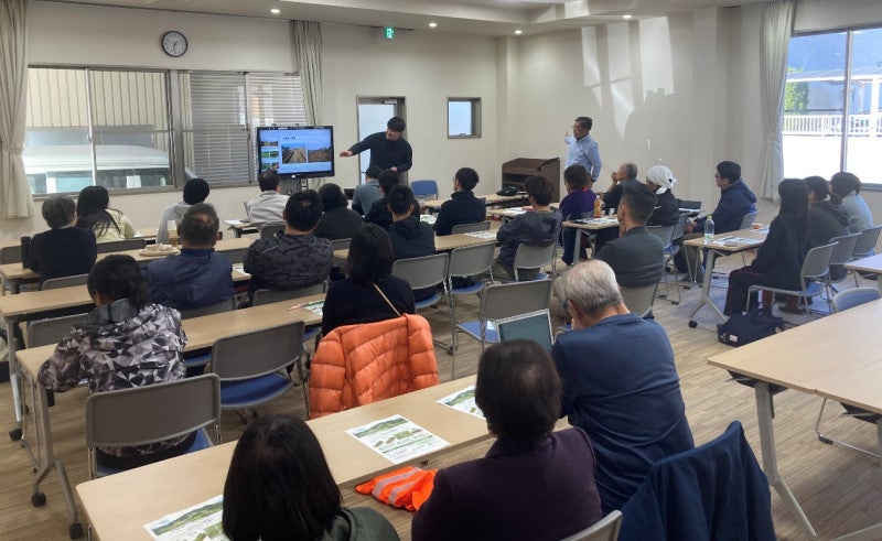 冒頭、一般社団法人シネコカルチャーの岡本覚氏がシネコカルチャー(Synecoculture/協生農法)の理念について講演し、生態系の多様性が循環し続ける環境を育むことの重要性を説明しました。参加者からは多数の質問が寄せられ、地域ならではの疑問や実装を見据えた議論が交わされました。