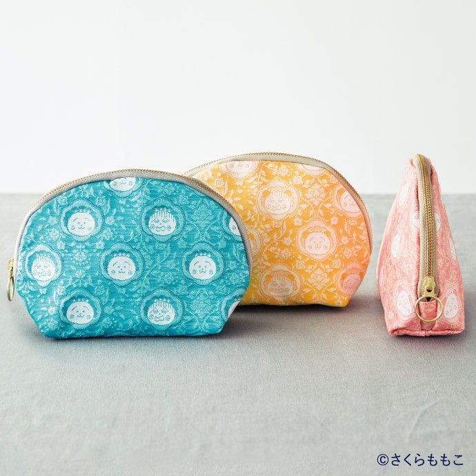 京都で生まれた伝統的な先染め織物「西陣織」で、コジコジの愛くるしい表情をユーモラスに表現したポーチができました。みやびな色彩と繊細な描写で、顔の細部まで美しく再現してくれたのは大正十年創業、京都西陣織元の「もりさん」。コジコジファンの間で人気の「ガーン」顔もユーモアたっぷりに表現され、思わずクスッと笑ってしまいそう。